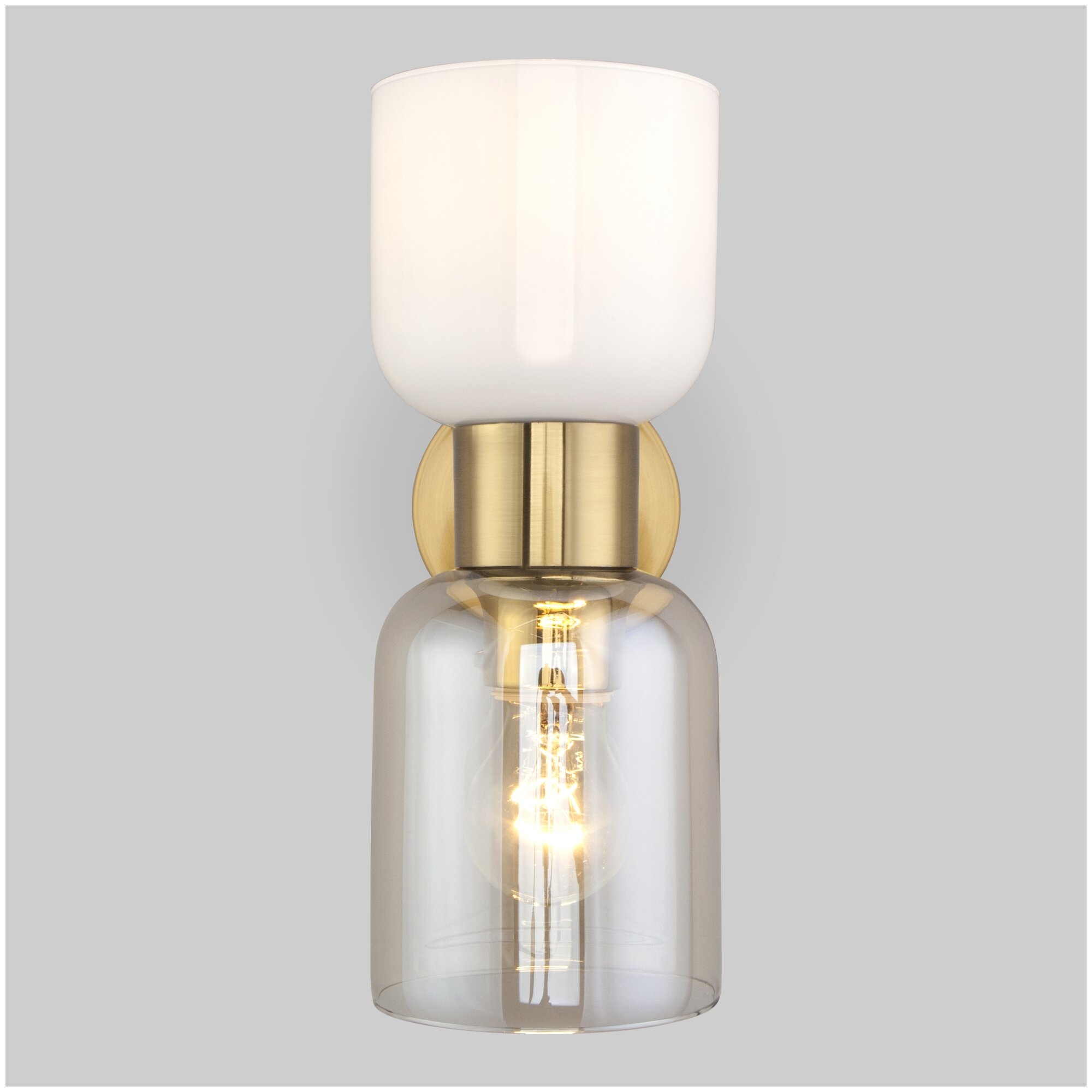 Бра Eurosvet a052291 серии TANDEM. Оживит ваш интерьер. Размеры 21.7x12x29.8 cm. Параметры пылевлагозащиты IP — 20. Плафон стеклянный прозрачный, а материал/цвет арматуры металл/латунь. Использует лампу с цоколем E27. Площадь освещения охватывает 4 m². Идеально подходит для спальни или гостиной. Страна происхождения бренда — КИТАЙ.