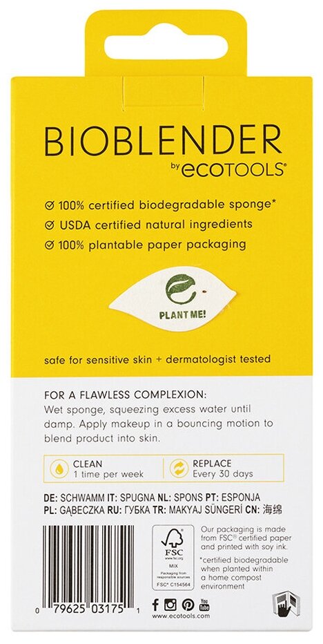 Bioblender by Ecotools – уникальная коллекция спонжей для макияжа, изготовленных из 100% биоразлагаемого материала. Благодаря специальной форме с тремя поверхностями спонжем удобно наносить и растушевывать продукт на любом участке лица. Спонж Bioblender Makeup Sponge идеален для работы с жидкими и кремовыми тональными средствами. Можно использовать как сухим, так и влажным.