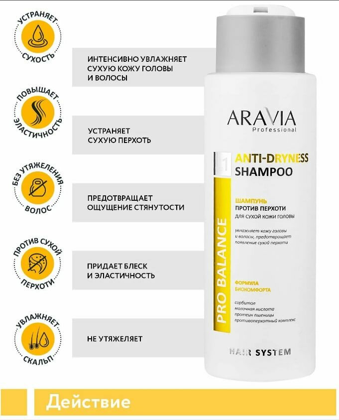Aravia Professional Шампунь против перхоти для сухой кожи головы Anti-Dryness Shampoo 400 мл (Aravia Professional ) (ЭХ99989422894)