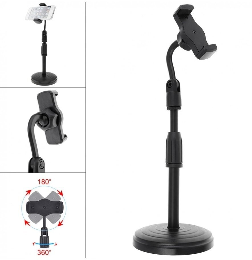 Телескопический настольный держатель устанавливается на гладкую поверхность. Поворот на 360 градусов.