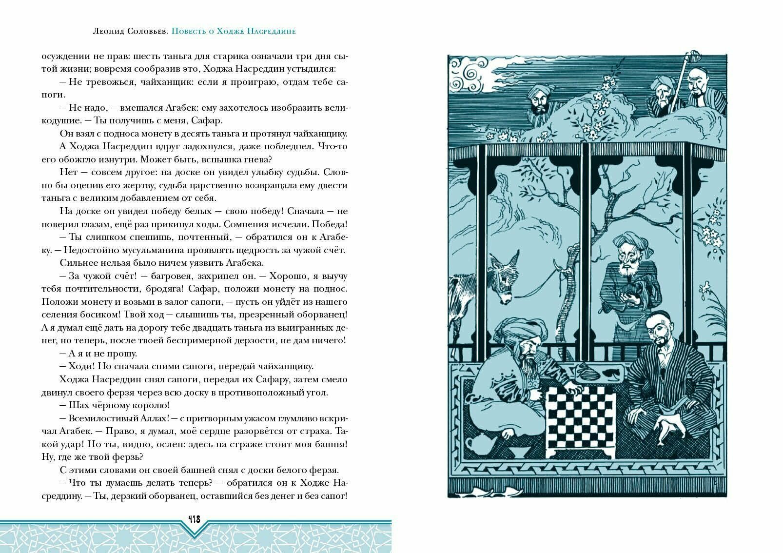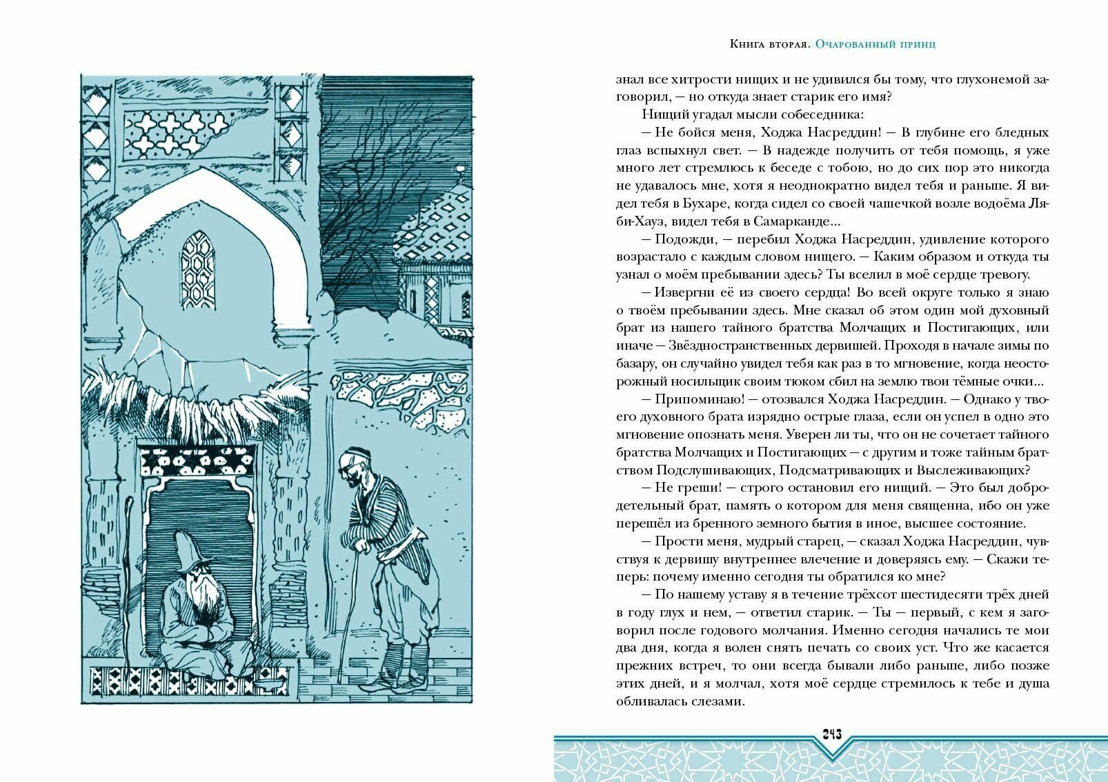Дилогия "Повесть о Ходже Насреддине" - это яркий, динамичный роман "Возмутитель спокойствия" и философско-лиричный "Очарованный принц". От первой до последней страницы книга пронизана искромётным юмором и иронией, глубокой мудростью и огромной любовью к жизни и людям - оторваться невозможно! Реалистичные иллюстрации мастера книжной графики Анатолия Зиновьевича Иткина замечательно передают восточный колорит повествования и раскрывают характеры героев.