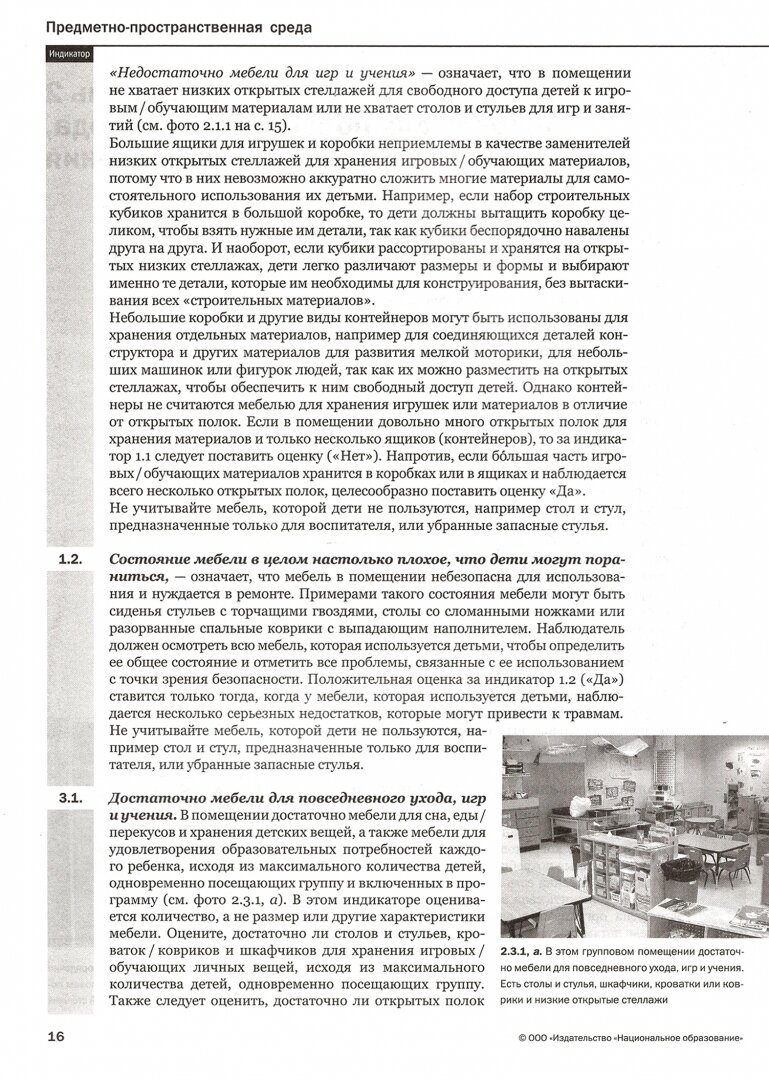 Материал книги структурирован в соответствии со Шкалами ECERS-R (по подшкалам, показателям и индикаторам), в ней даются четкие указания по интерпретации каждого индикатора в рамках конкретного показателя и по проведению оценивания.
