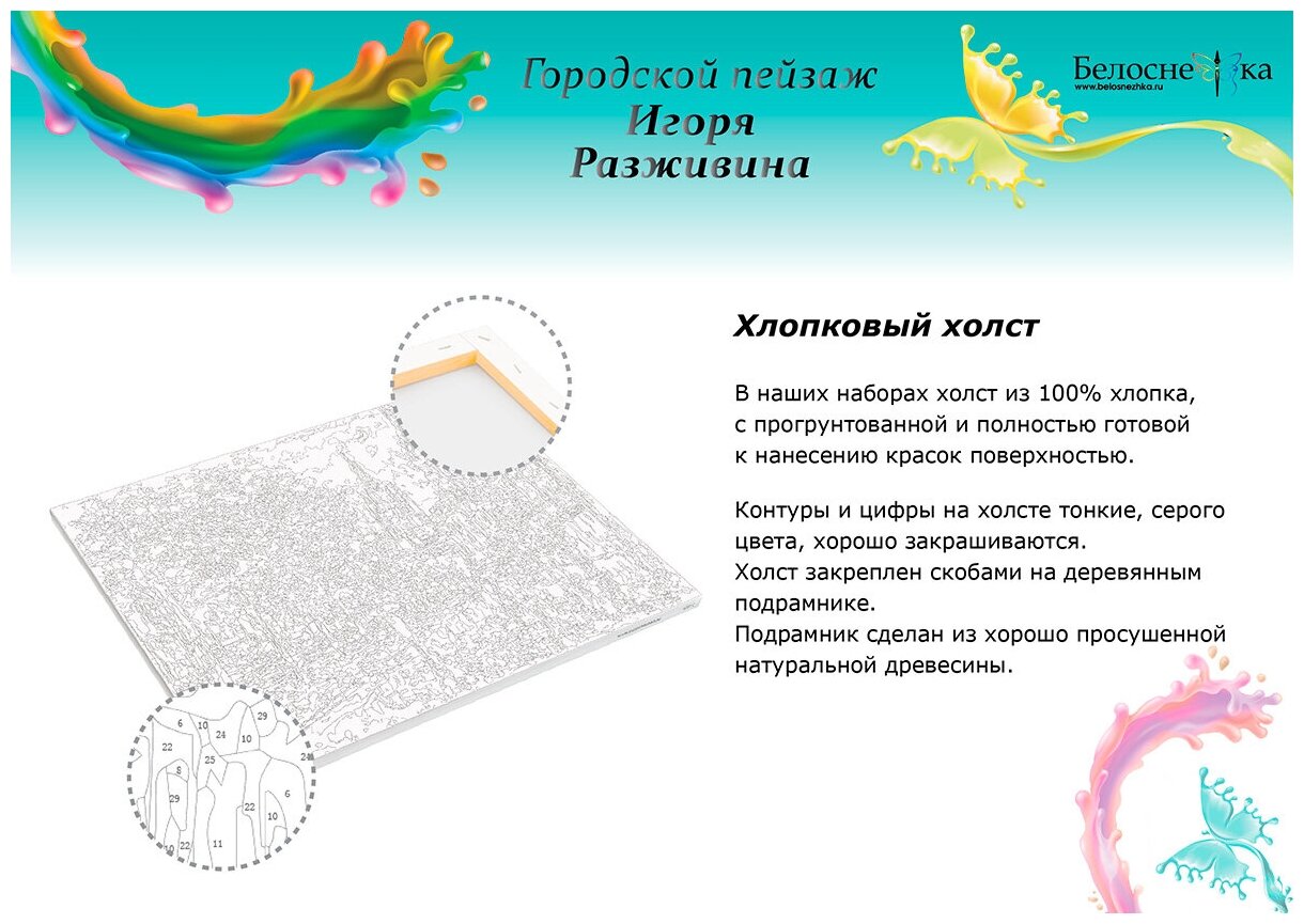 Набор из серии “Городской пейзаж” от Игоря Разживина — это интересный взгляд на жизнь современных городов, это сюжет, в котором кажется, что город на минуту застыл и вот-вот все снова придет в движение. При работе над картиной перед вами будут открываться новые детали, изображение шаг за шагом проявится на холсте и наконец станет вашим любимым городом.