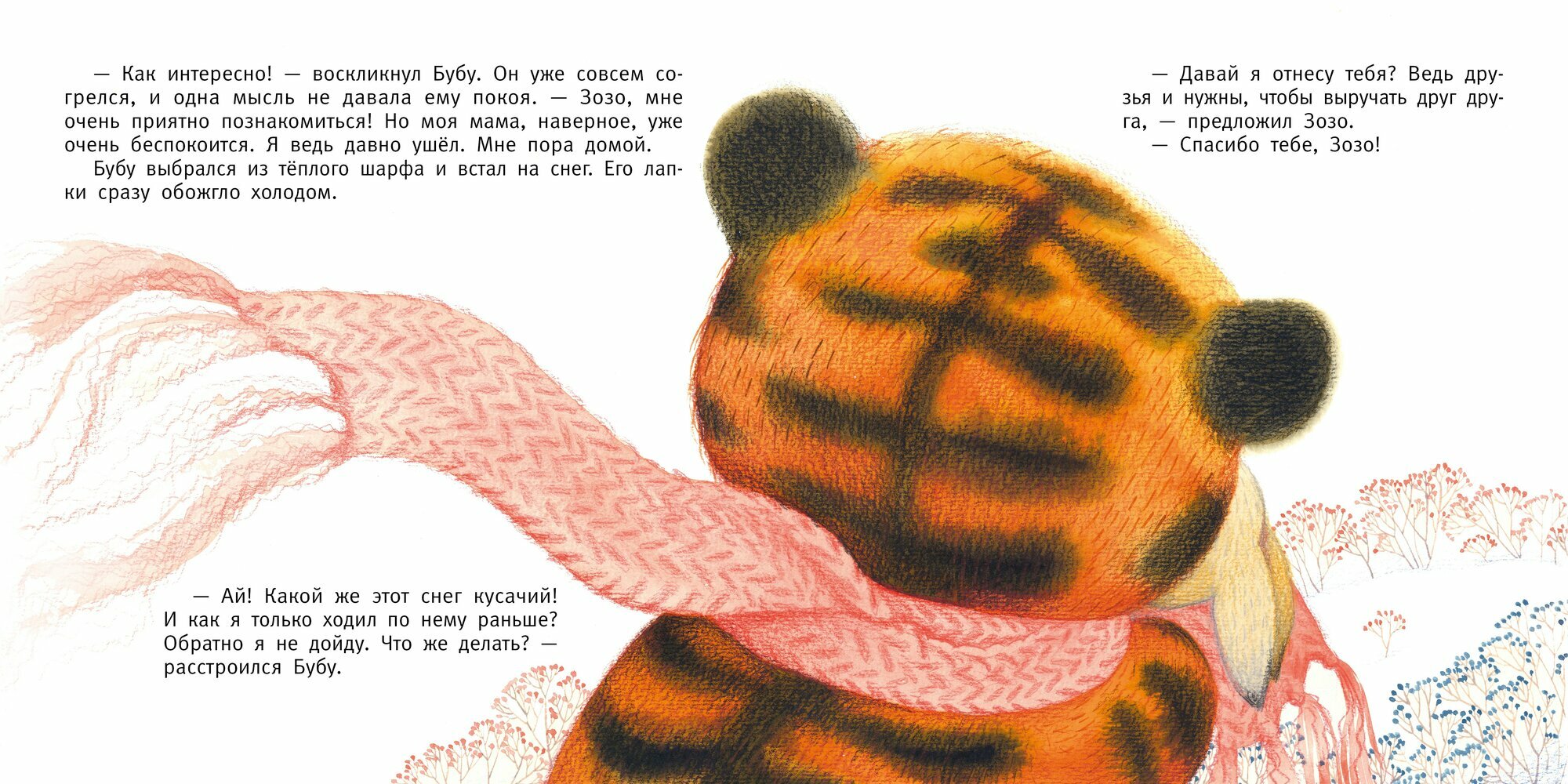 Зайчонок Бубу ещё никогда не видел снег, а ещё он никогда не видел тигров. Новый опыт и новое знакомство могут оказаться очень неожиданными!