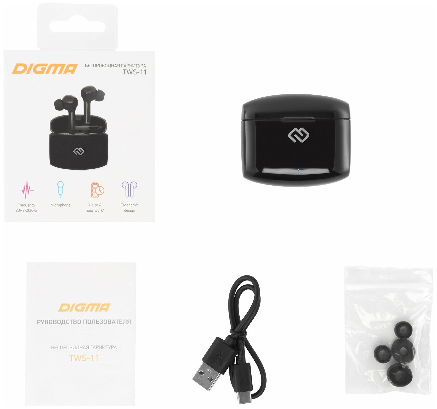 Гарнитура Digma Bluetooth вкладыши черный TWS-11