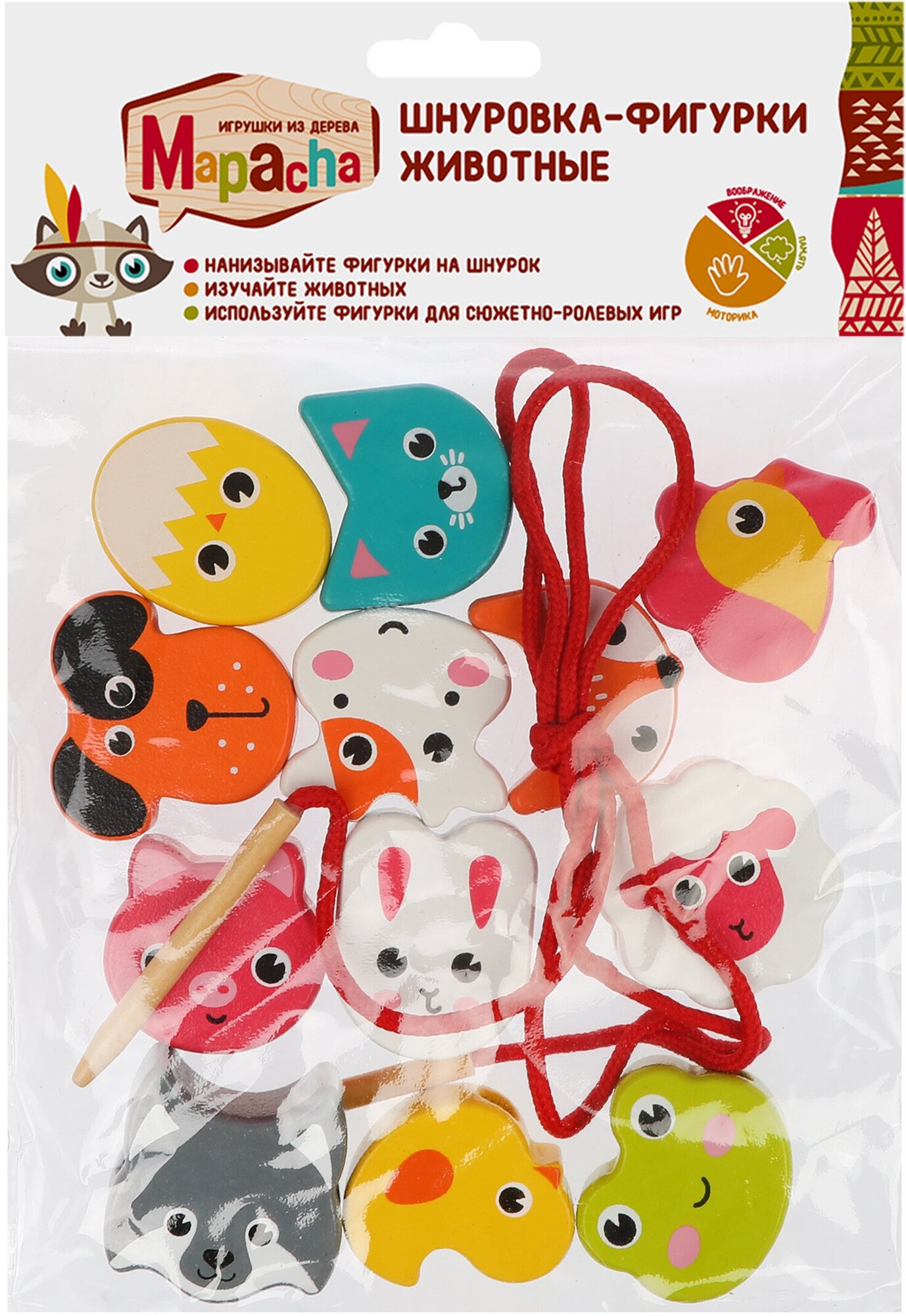 Деревянная игрушка Mapacha Шнуровка-фигурки Животные