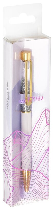 Шариковая ручка MESHU – это привлекательный аксессуар для ярких, смелых и успешных. Золотой корпус ручки из металла с лиловым матовым эффектом украшен вставкой с серебристым глиттером и дополнен металлическим клипом, с помощью которого ручку можно закрепить на одежде или ежедневнике.