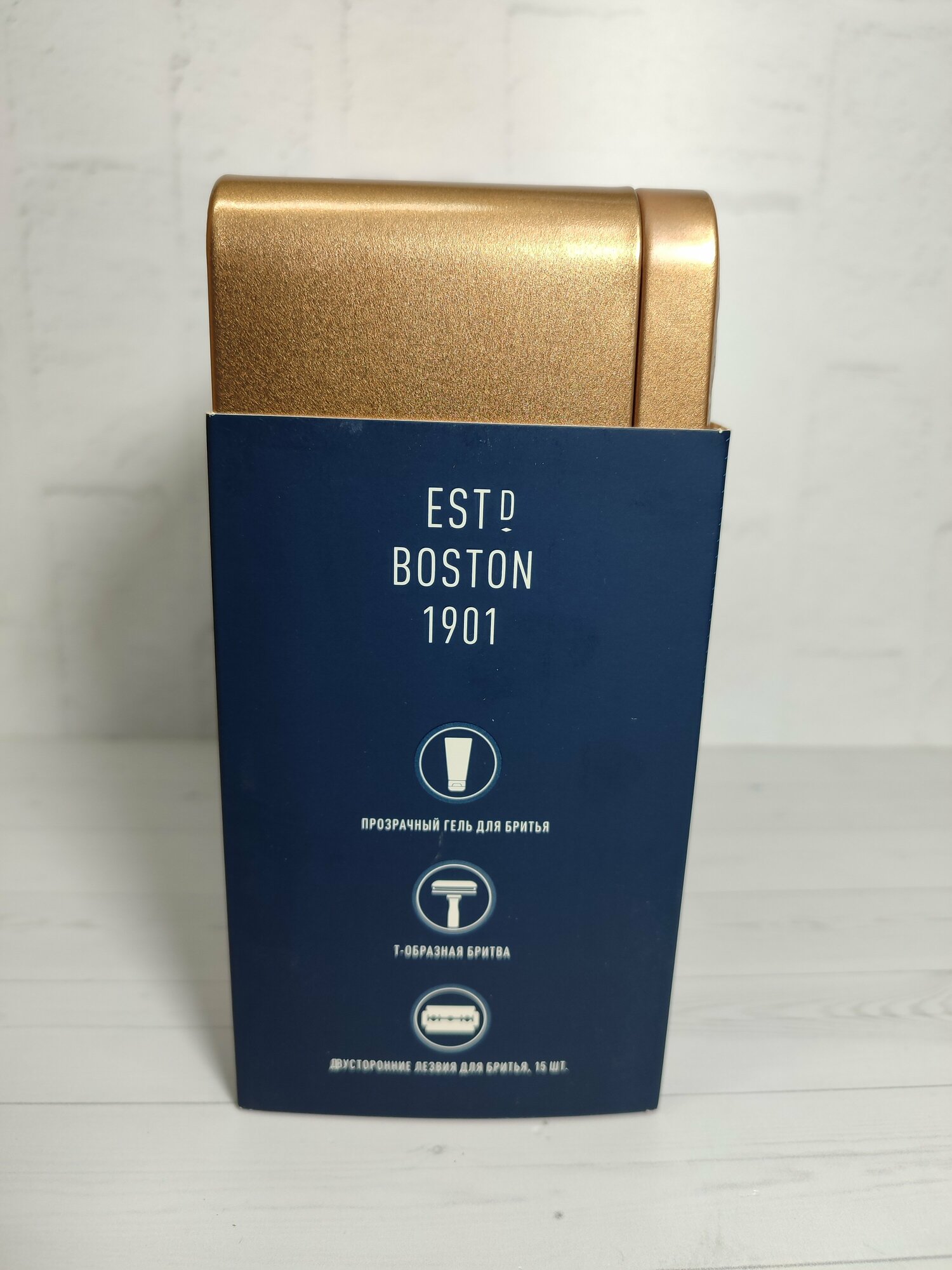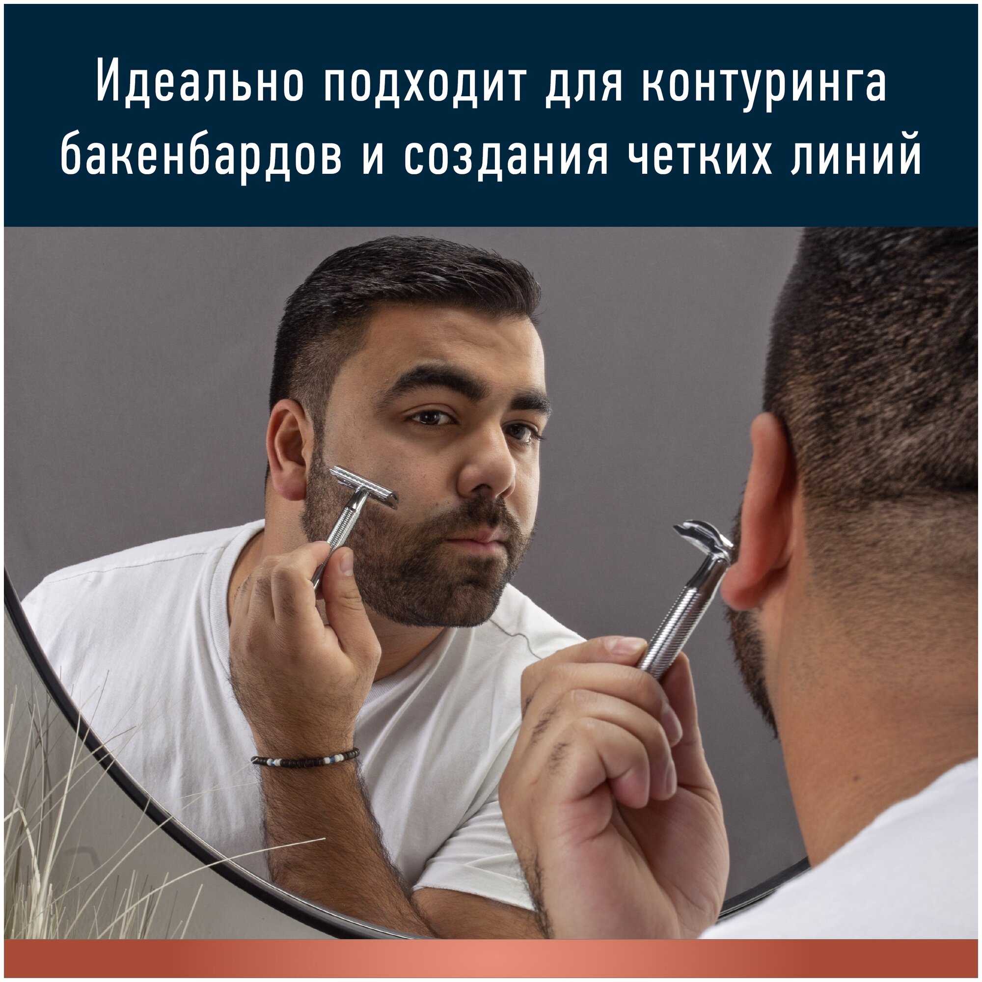 | Состав набора | Т-образная бритва с закрытым гребнем и хромированным покрытием; 15 двусторонних лезвий с платиновым покрытием; Прозрачный гель для бритья с экстрактом белого чая 150 мл для точного контуринга в металлической коробке. |