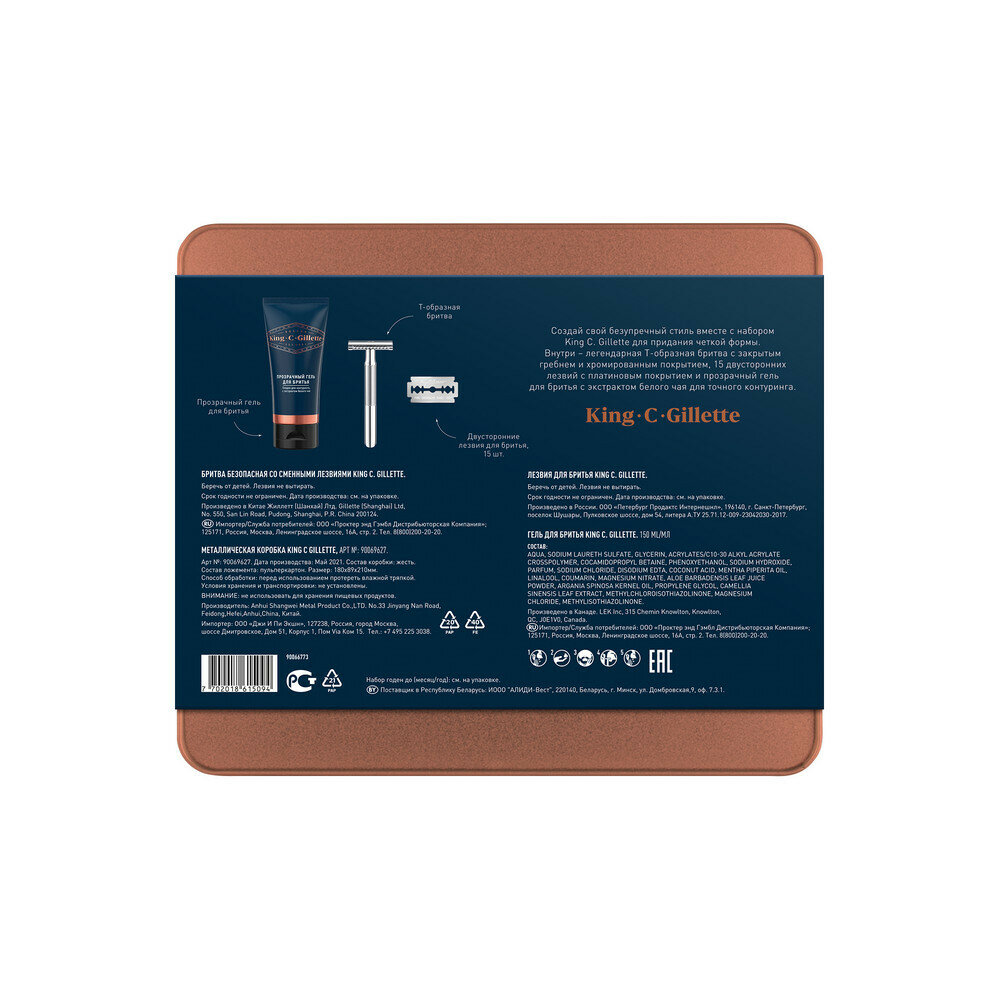 Подарочный набор Gillette King C Т-образная бритва + 15 двусторонних лезвий для контуринга + Гель для бритья 150мл Утконос