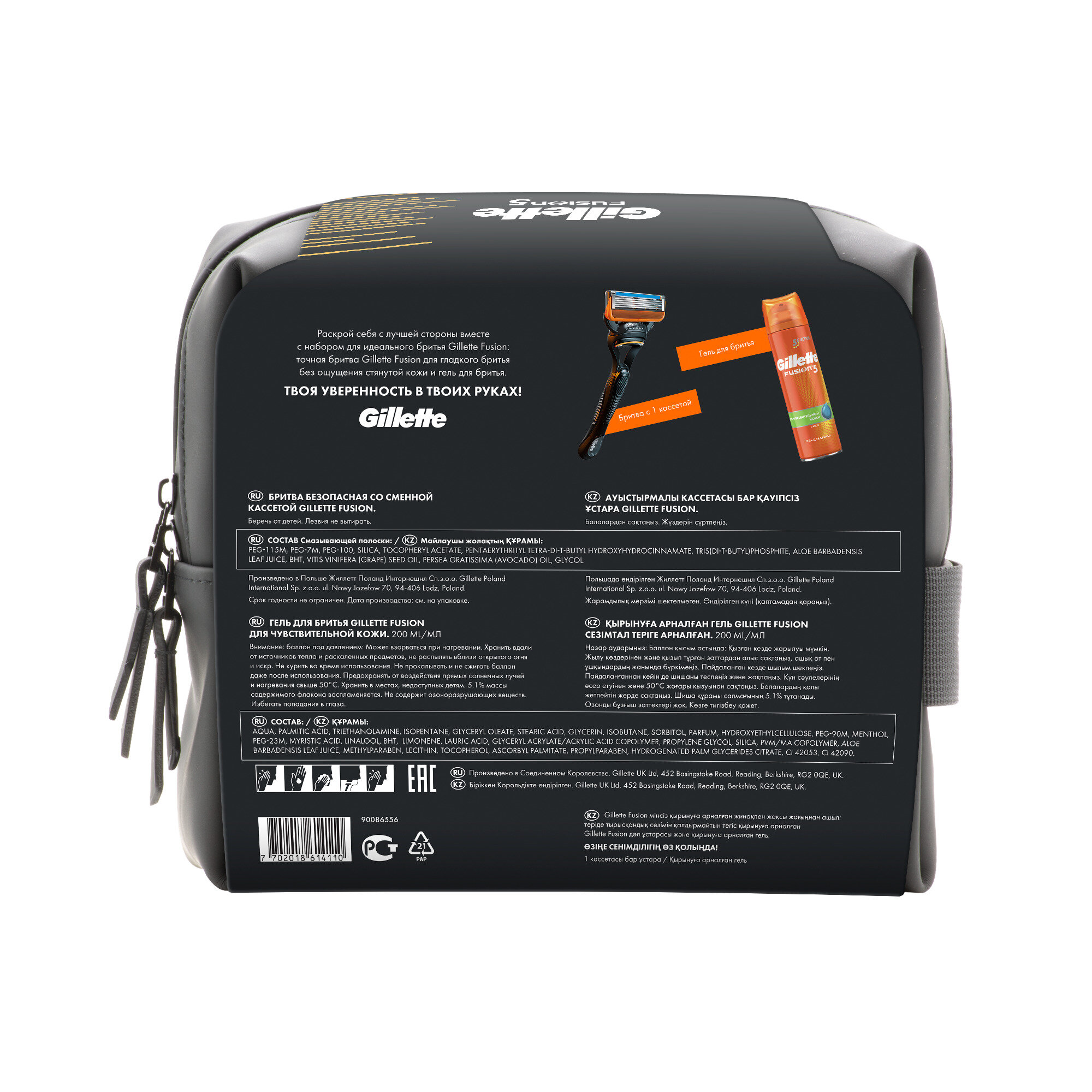 | Состав набора | станок для бритья; гель для бритья; косметичка |