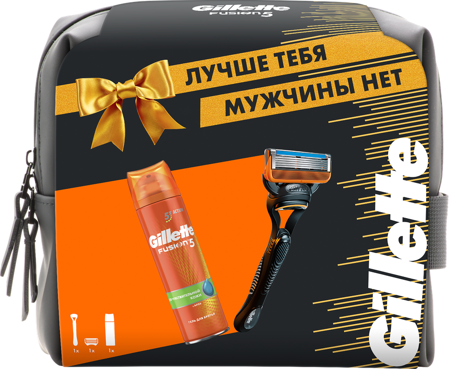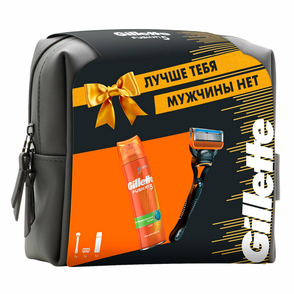 Подарочный набор Gillette Fusion Бритва с 1 сменной кассетой с 5 лезвиями и Гель для бритья 200мл Утконос