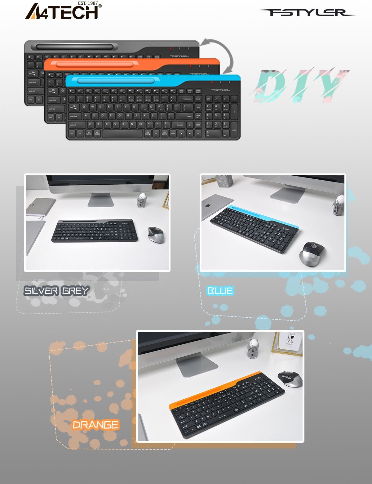 Клавиатура A4TECH Fstyler FBK25 USB Bluetooth/Радиоканал белый серый [fbk25 white]