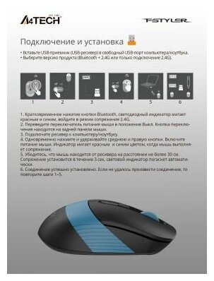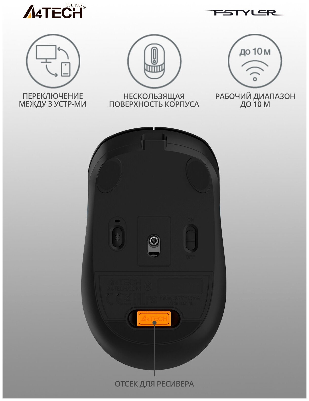 Мышь A4TECH Fstyler FB10C оптическая беспроводная USB черный и синий [fb10c ash blue] FB10C ASH BLUE