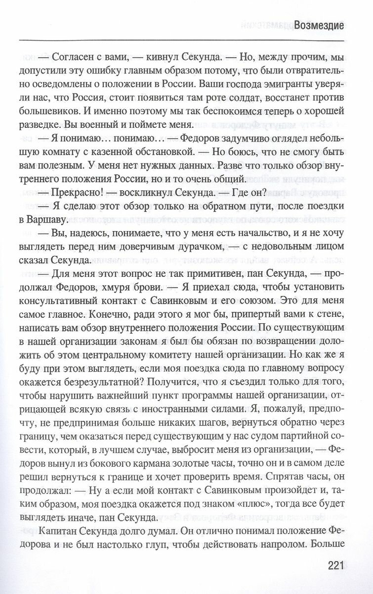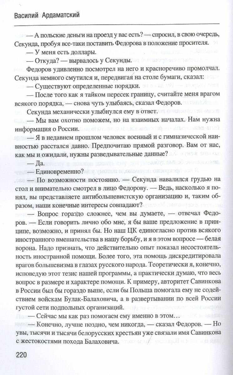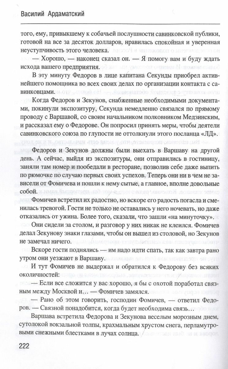 В центре романа известного советского писателя Василия Ивановича Ардаматского (1911-1989) - сложнейшая операция, проведенная в середине 1920-х годов нашими чекистами под руководством Ф.Э. Дзержинского, по раскрытию и уничтожению контрреволюционного заговора, возглавляемого ярым врагом советской власти, опытным конспиратором и террористом, правым эсером Борисом Савинковым. Труднейшую дуэль с Савинковым пришлось вести чекисту А.П. Федорову. Произведение построено на письмах, дневниках Б. Савинкова, отрывках из протоколов и других архивных материалах. Роман дважды экранизирован, последний раз в 1981 году (телефильм "Синдикат-2", в главных ролях: Михаил Козаков, Евгений Лебедев, Наталья Фатеева; режиссер Марк Орлов).