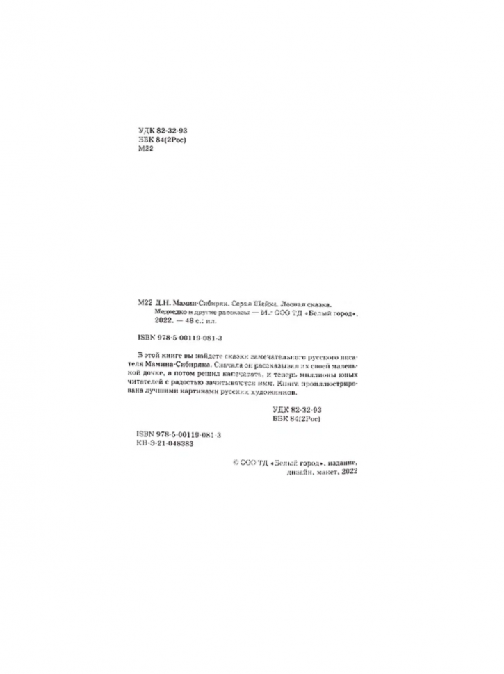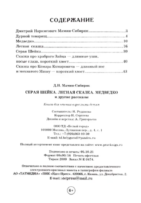 Сервис сравнения цен СкидкаГИД предлагает сравнить цены на товар «Книга: Серая Шейка Лесная сказка Медведко и другие рассказы (Дмитрий Мамин-Сибиряк); ТД "Белый город", 2022»