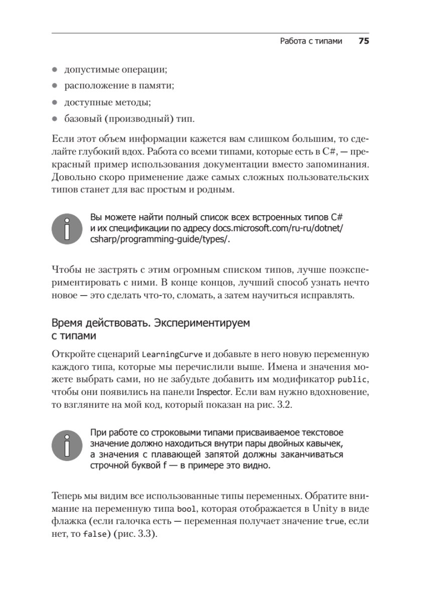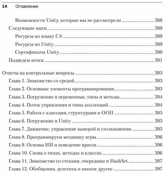 В пятом издании изложены последние версии всех современных функций C# на примерах из игрового движка Unity, а также добавлена новая глава о промежуточных типах коллекций. Вы начнете с основ программирования и языка C#, узнаете основные концепции программирования на С#, включая переменные, классы и объектно-ориентированное программирование. Освоив программирование на C#, переключитесь непосредственно на разработку игр на Unity и узнаете, как написать сценарий простой игры на C#. На протяжении всей книги описываются лучшие практики программирования, которые помогут вам вывести свои навыки Unity и C# на новый уровень. В результате вы сможете использовать язык C # для создания собственных реальных проектов игр на Unity.