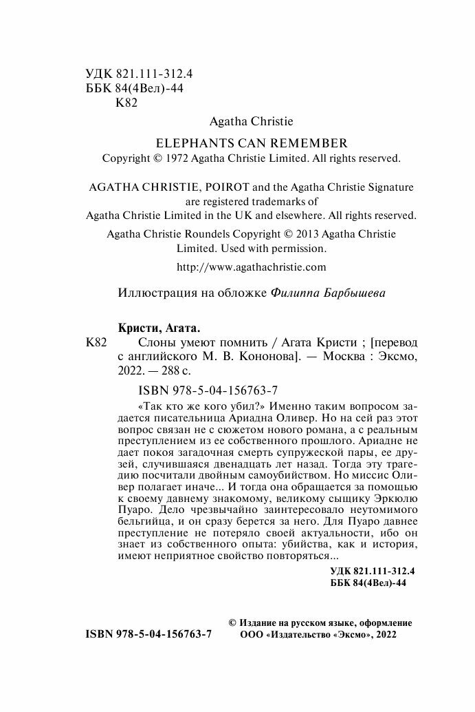 Книга: Слоны умеют помнить (Агата Кристи); Эксмо, Редакция 1, 2024