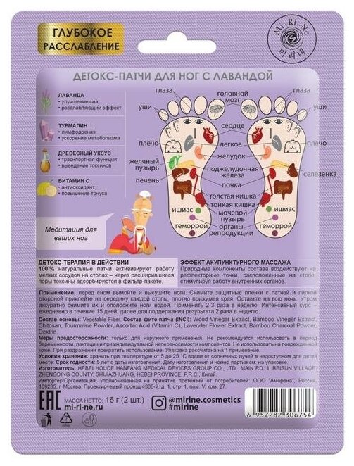 Детокс-Патчи для ног Mi-Ri-Ne с лавандой 16г