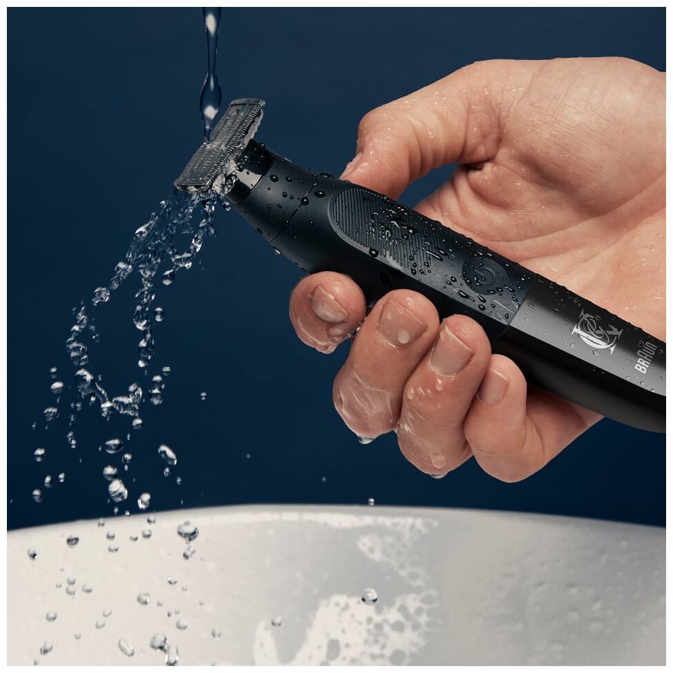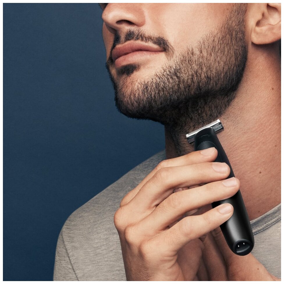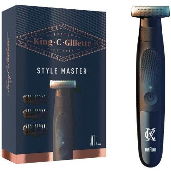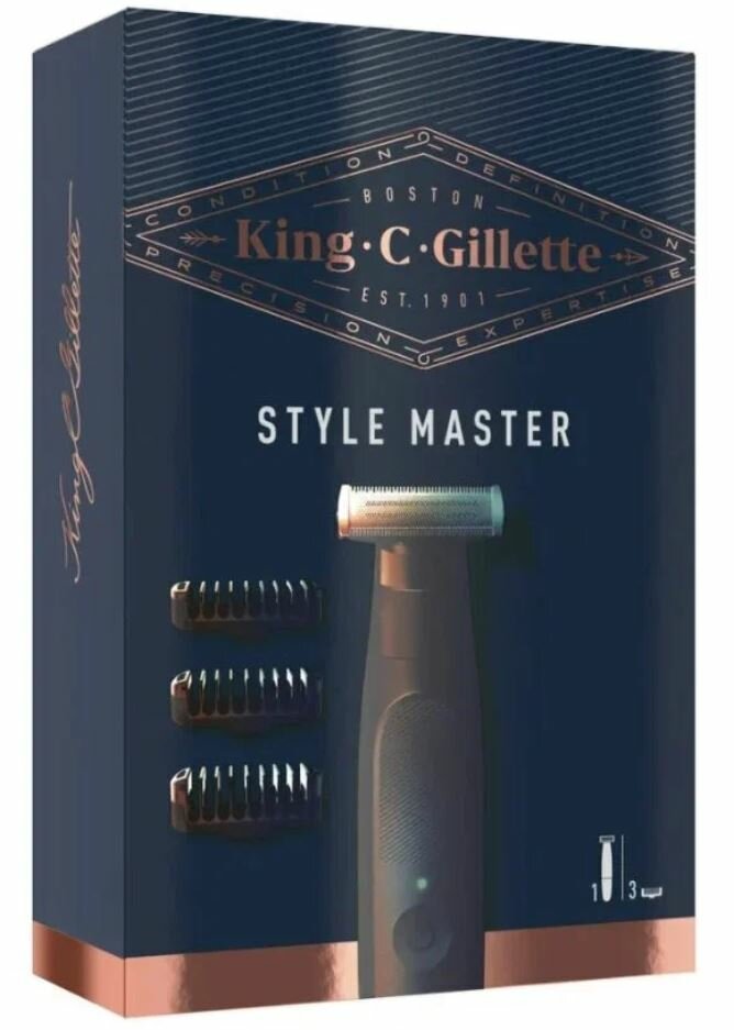 Мужской беспроводной триммер для щетины для точного стайлинга King C. Gillette Style Master с 4D-лезвием. Триммер Для Точного Стайлинга King C. Gillette Style Master — это универсальный инструмент для бритья, создания контуров, подравнивания бороды и поддержания щетины. Этот беспроводной триммер оснащен 4D-лезвием для легкого, быстрого и комфортного бритья. 3 сменных насадки-гребня триммера для точного стайлинга Style Master (1мм, 3мм или 5мм) позволяют подрезать волоски в обоих направлениях: как вверх, так и вниз. Триммер оснащен сменным цельнометаллическим лезвием со сроком службы до 6 месяцев, плавающей головкой для адаптации к контурам лица в труднодоступных местах и тонкой, прорезиненной на 360˚ ручкой для обеспечения максимальной точности. Триммер полностью водонепроницаем и работает 45 минут без подзарядки для удобного использования в душе.- Универсальный многофункциональный триммер для щетины с 4D-лезвием для бритья, создания контуров и стрижки в 4-х направлениях- Три сменных насадки-гребня позволяют подрезать волоски в обоих направлениях: как вверх, так и вниз- Долговечные сменные лезвия, которые остаются острыми до 6 месяцев бритья- Плавающая головка, адаптирующаяся к контурам лица- Перерабатываемая упаковка