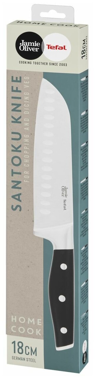 Отличный выбор: увлечённость Джейми Оливера и технологии Tefal соединились, чтобы создавать лучшие аксессуары для кухни.Универсальность: ножи для резки, измельчения и нарезки кубиками любых продуктов – от мяса до овощей и фруктов.Идеальная острота: немецкая нержавеющая сталь премиального качество гарантирует длительное сохранение остроты лезвия.Лезвие высшего качества: лезвие поможет вам готовить без усилий.Удобная рукоятка: нескользящая и безопасная рукоятка для комфортного использования. Срок службы: не ограничен