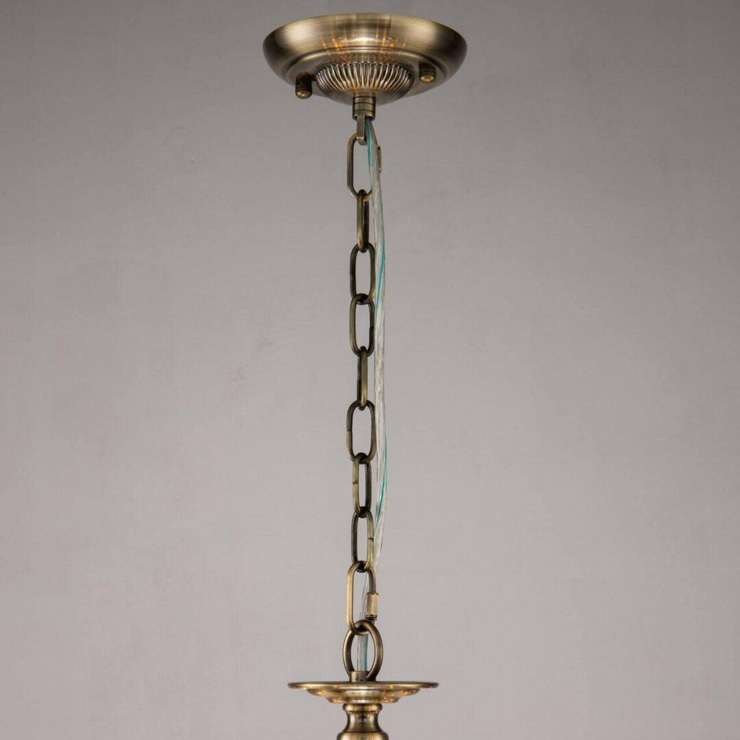 Арматура люстры выполнена из металла, хрусталя и текстиля, что придает ей особую прочность и долговечность. Цвет арматуры – бронзовый, а цвет плафона/абажура – бежевый.