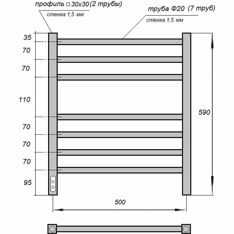 Электрический полотенцесушитель Point PN70756B П7 500x590 диммер слева.