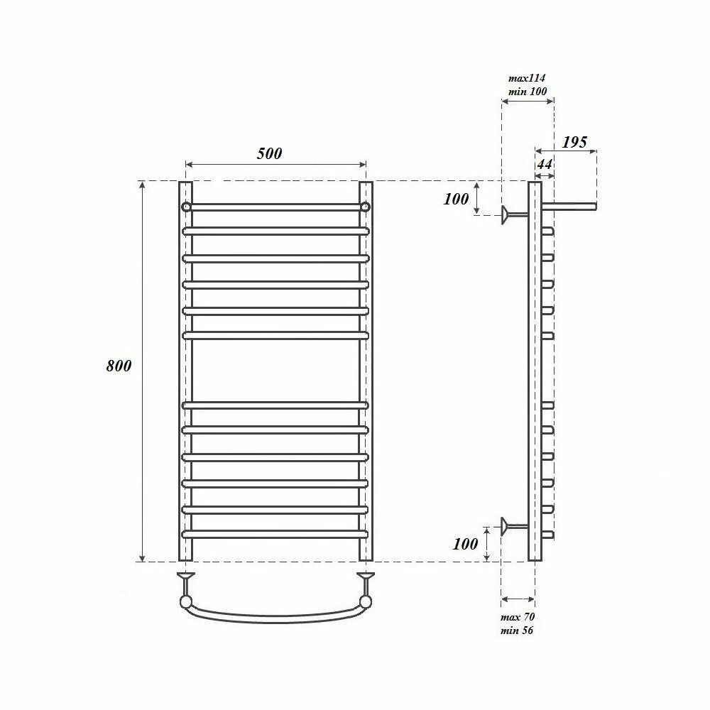 | ВКоробке | Полотенцесушитель - 1 шт. Нагревательный тэн - 1 шт. Терморегулятор - 1 шт. Комплект креплений - 1 шт. Комплект декоративных заглушек - 1 шт. Кран Маевского - 1 шт. Электрический кабель - 1 шт. Инструкция - 1 шт. |