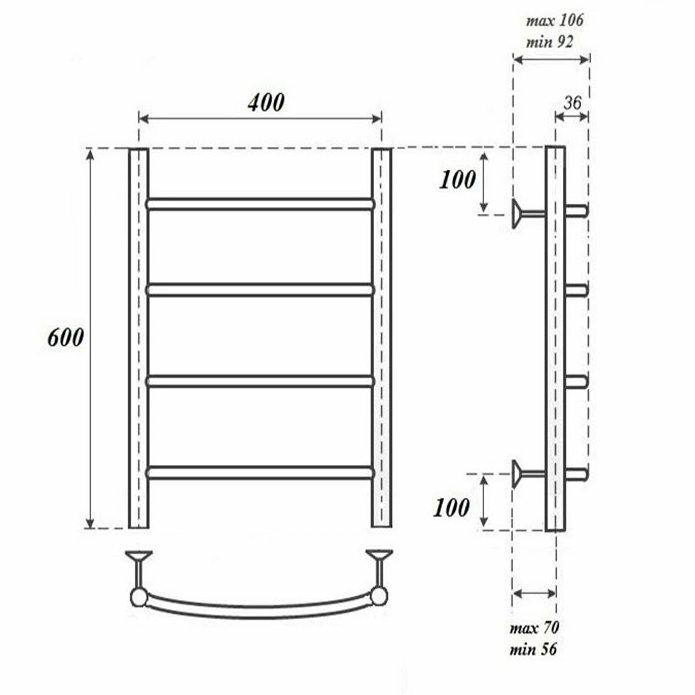 | ВКоробке | Полотенцесушитель - 1 шт. Комплект креплений - 1 шт. Комплект декоративных заглушек - 1 шт. Кран Маевского - 1 шт. Инструкция - 1 шт. |