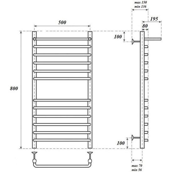 | ВКоробке | Полотенцесушитель - 1 шт. Комплект креплений - 1 шт. Комплект декоративных заглушек - 1 шт. Кран Маевского - 1 шт. Инструкция - 1 шт. |