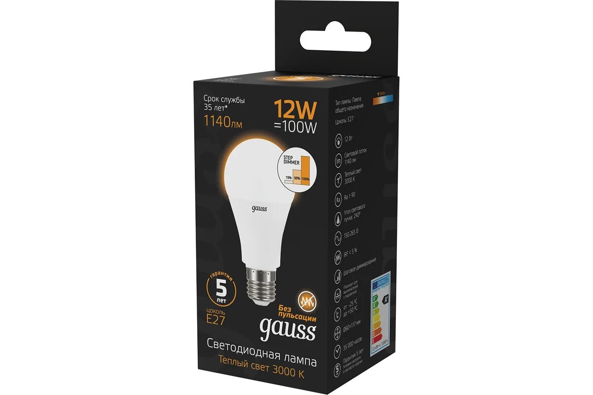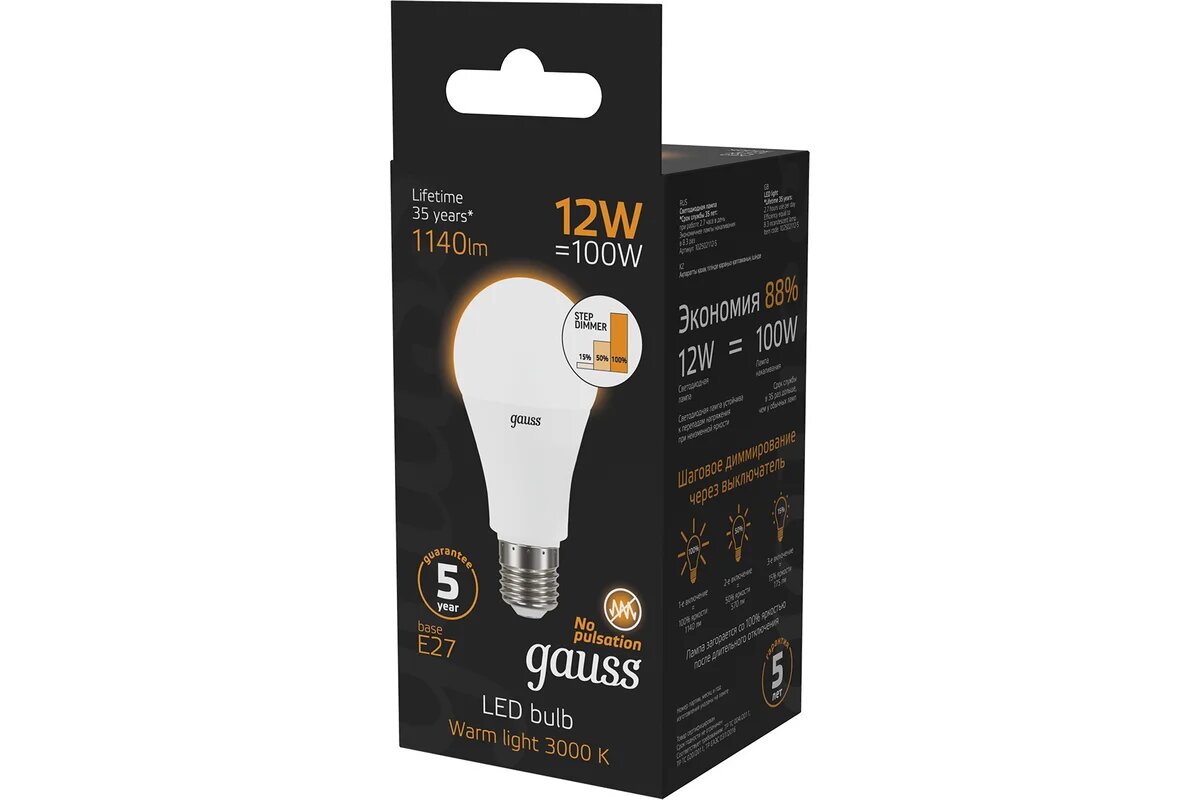 Gauss LED Classic A 12W/2700 E27 (Арт. LD102502112), обзор светодиодной лампы