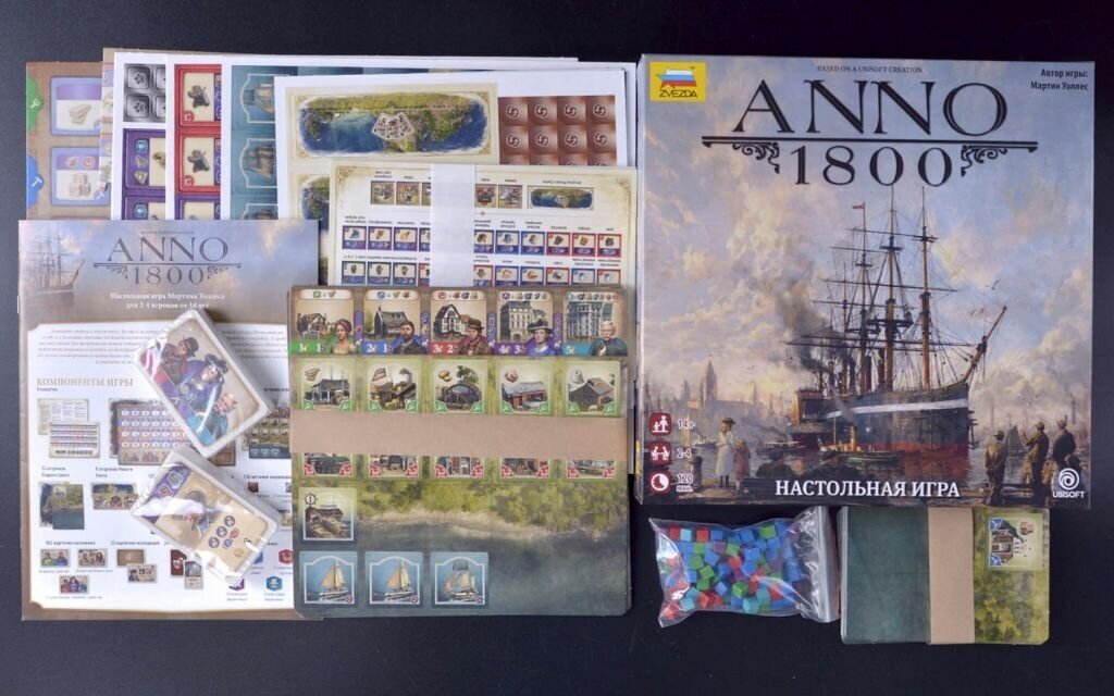 В Anno 1800, настольной игре, основанной на популярной серии градостроительных симуляторов на ПК, вам предстоит поучаствовать в развитии одного из островов Старого Света XIX века, переживающего бурный рост на заре индустриальной эры. Вы, губернатор этих земель, без устали развиваете экономику и промышленность родного острова. Для этого вы используете многочисленные торговые корабли, которые дают вам доступ к богатым рынкам Старого и Нового Света.