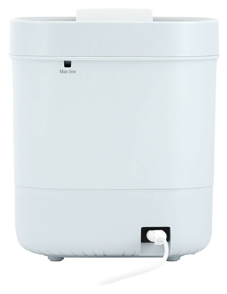 В увлажнитель вмещается до 4-х литров воды — этого объема хватает для 11 часов беспрерывного увлажнения на максимальной скорости.