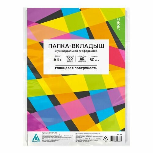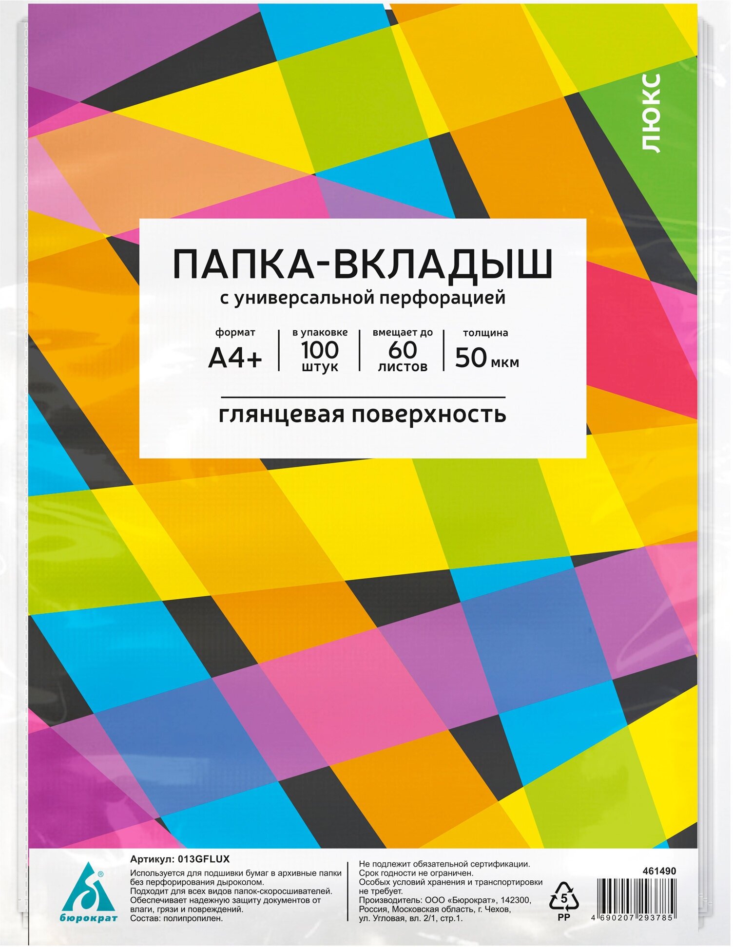 Папка-вкладыш Люкс глянцевые А4+ 100 штук Бюрократ