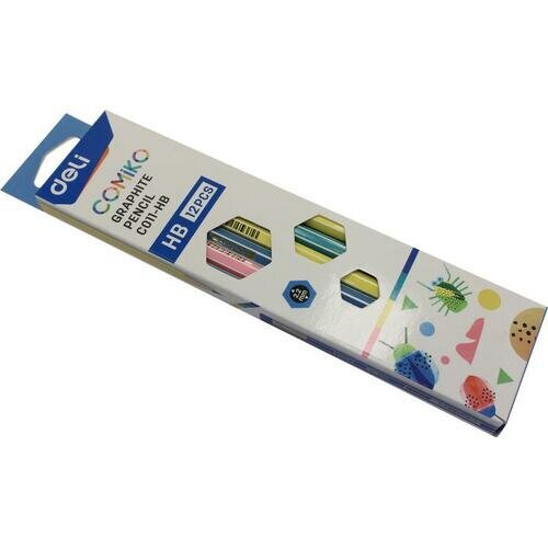 Набор карандашей чернографитных 12 штук HB с ластиком DELI