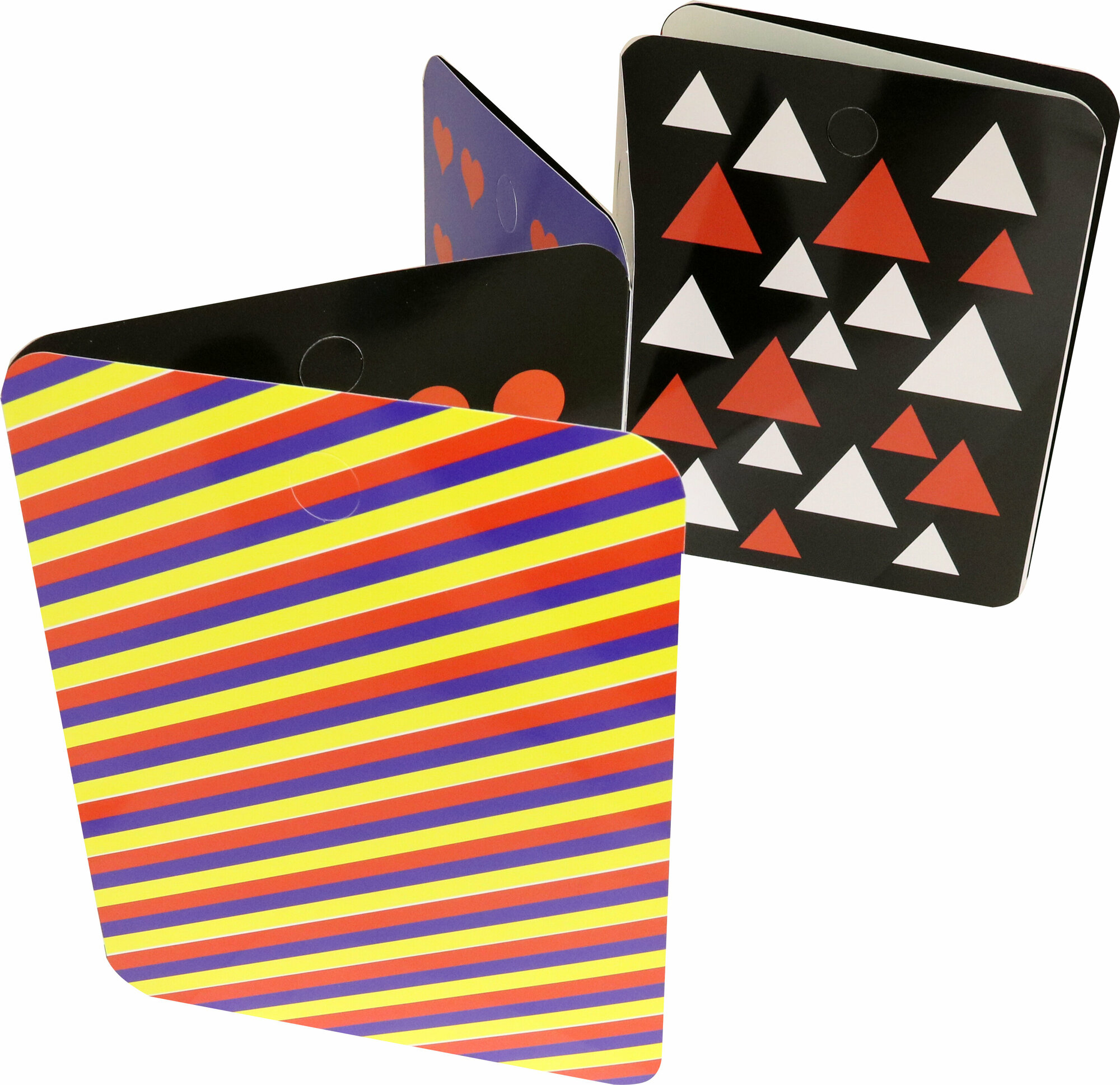 Сборник в целом похож на "Интеллект" той же серии: помимо абстракций в нем содержатся изображения кругов, овалов, квадратов, треугольников, звездочек, сердечек и ромбиков разного размера и цвета на разном фоне. Нет деления на черно-белую и цветную стороны, размер самой книжки крупноват, если брать с целью показа младенцу, лежащему в кроватке. Моему сыну год, с момента как научился сам листать книжки, с удоврльствием листает и разглядывает картинки.
