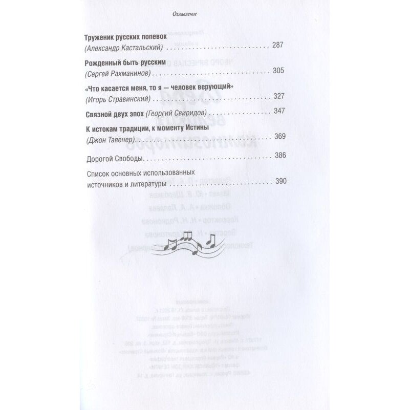 В контексте взаимосвязи христианства и творчества в данной книге рассмотрена история жизни 19 выдающихся зарубежных и отечественных композиторов, живших на протяжении трех веков. Издание рассчитано на широкий круг читателей, интересующихся вопросами культуры, истории, духовной жизни.
