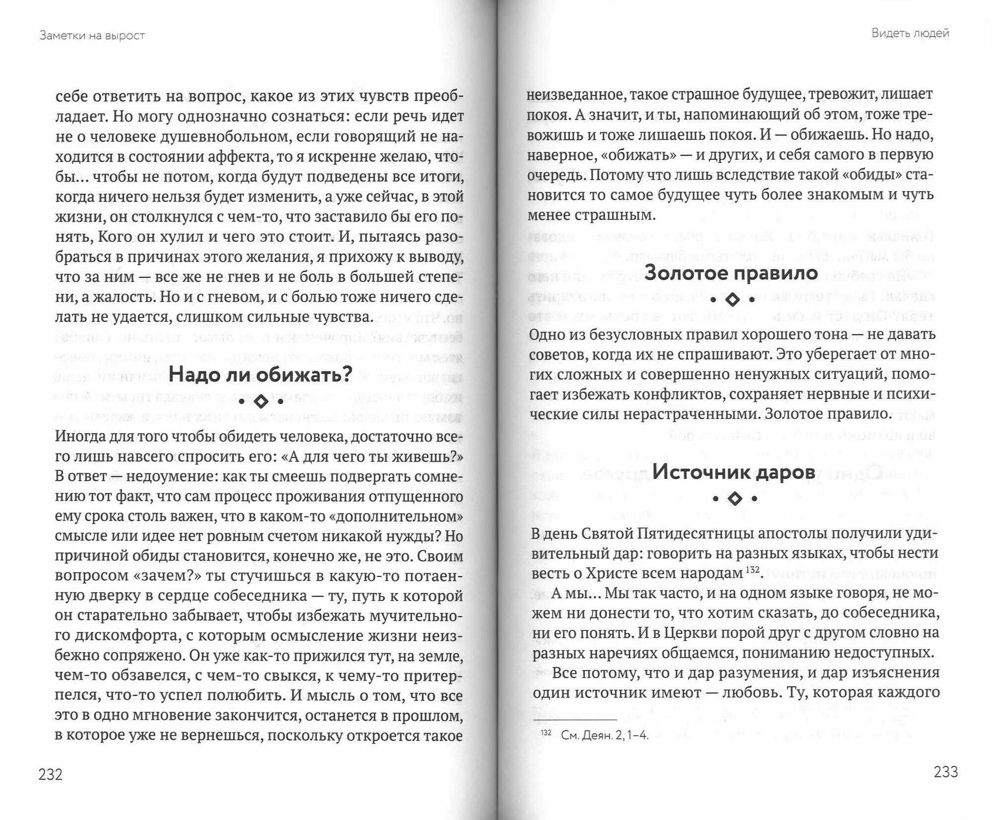 В книге много жизненных примеров, представленных в виде заметок. Мысли автор излагает достаточно кратко и ясно для понимания. Очень полезно для духовного роста. Отец Нектарий говорит о вещах с которыми мы сталкиваемся практически каждый день и не задумываемся над ними. Советы автора помогут не только в религиозной жизни, но и в личностном росте .