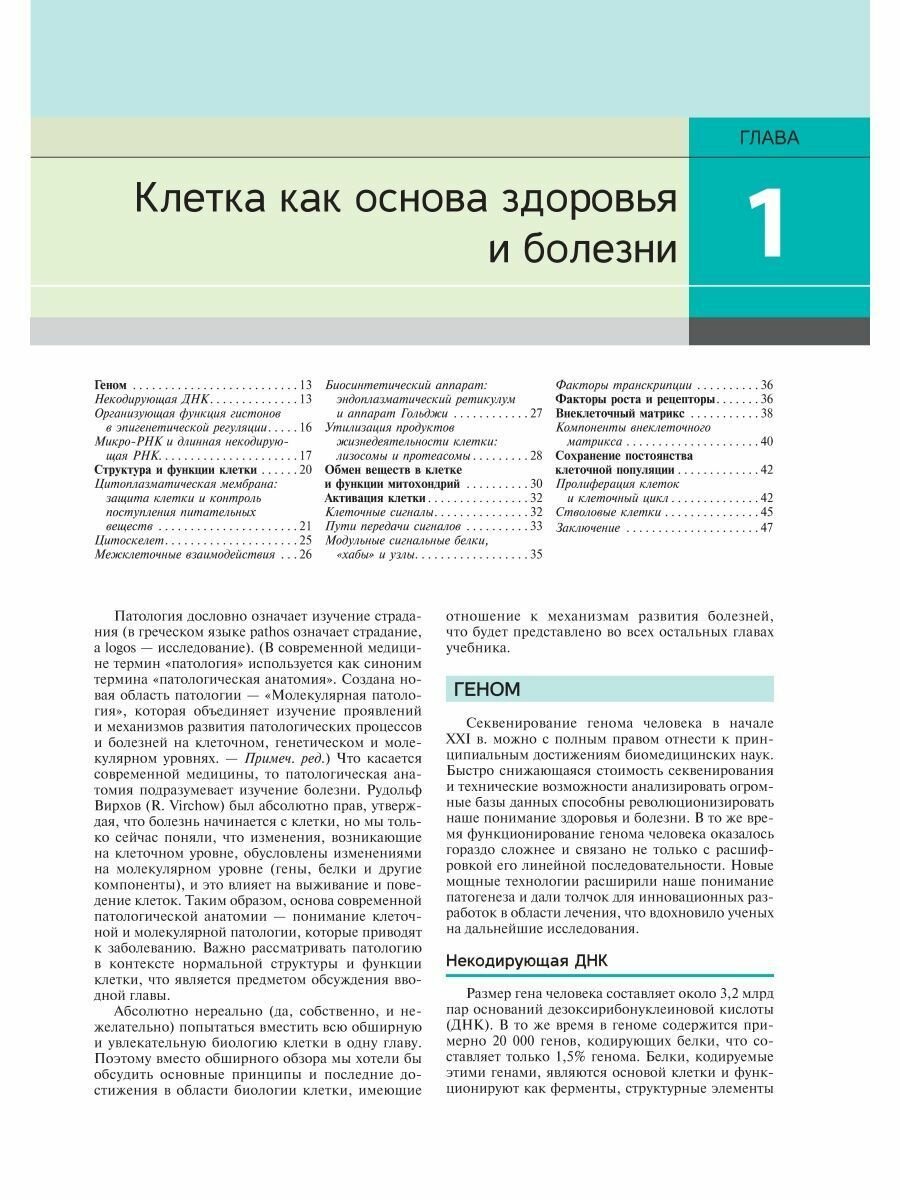 Настоящее издание отражает инновационные тенденции развития современной медицины и включает основы молекулярной патологии физиологических процессов и болезней. Материал дается интегративно на генетическом, молекулярном, субклеточном, клеточном и органном уровнях. Книга изобилует таблицами и иллюстрациями высочайшего качества, представленными как макро- и микропрепаратами, так и цветными схемами, выполненными в 3D-формате, что значительно облегчает обучение.