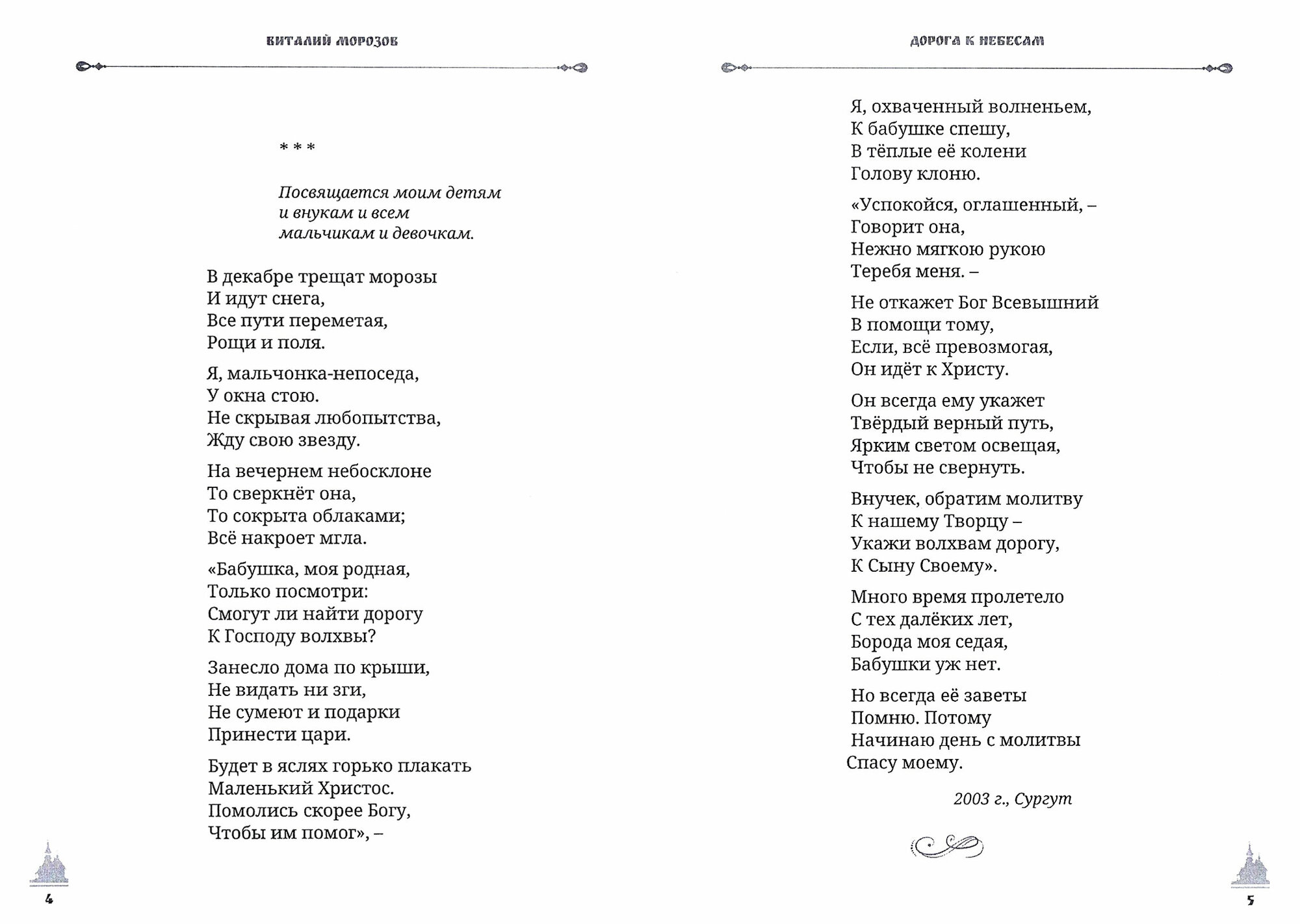 В своём поэтическом сборнике Виталий Морозов обращается к своей семье, своим внукам, своим друзьям. Наверное, каждому из нас хочется оставить после себя слово, которое будут читать и перечитывать наши потомки. В этой книге автор делится с читателями своими мыслями, несет слово о жизни, о Родине, о теплоте людских сердец.