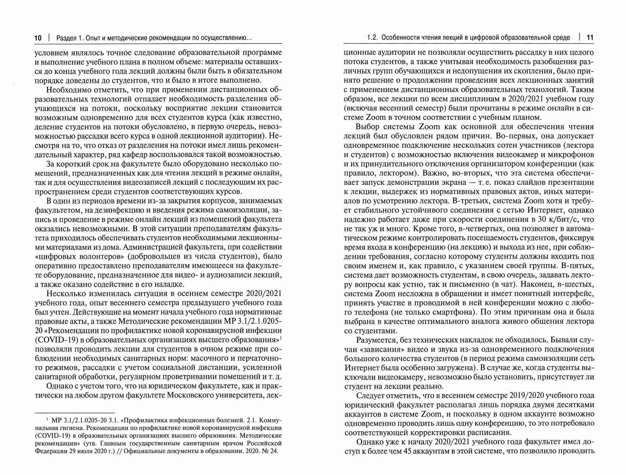 В настоящем издании описана практика применения дистанционных форм обучения в 2019–2020 (весенний семестр) и в 2020–2021 учебных годах (чтение лекций, проведение семинарских и практических занятий). Изложены особенности промежуточной и итоговой аттестации обучающихся, проведения приемной кампании, научных мероприятий, включая заседания диссертационных советов, особенности заседаний кафедр и ученого совета факультета, а также иных мероприятий, проведенных на юридическом факультете в дистанционном режиме.