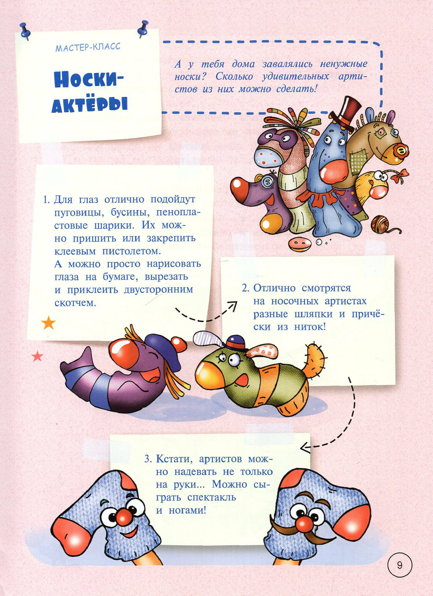 Книга очень понравилась, думаю, что она заинтересует и детей, и родителей. Отлично подойдет для семейного чтения! Настоящий клад для родителей, учителей, желающих заинтересовать детей и чтением, и творчеством. Книга – история (приключения, путешествия), книга – мастер-класс. Пошаговые описания для создания героев и декораций из самых простых материалов, которые есть у каждого дома под рукой - из детских перчаток, носков из проволочек, бумаги, лоскутков… Можно читать и мастерить целый месяц – в итоге получится целая коллекция забавных игрушек для домашнего театра.
