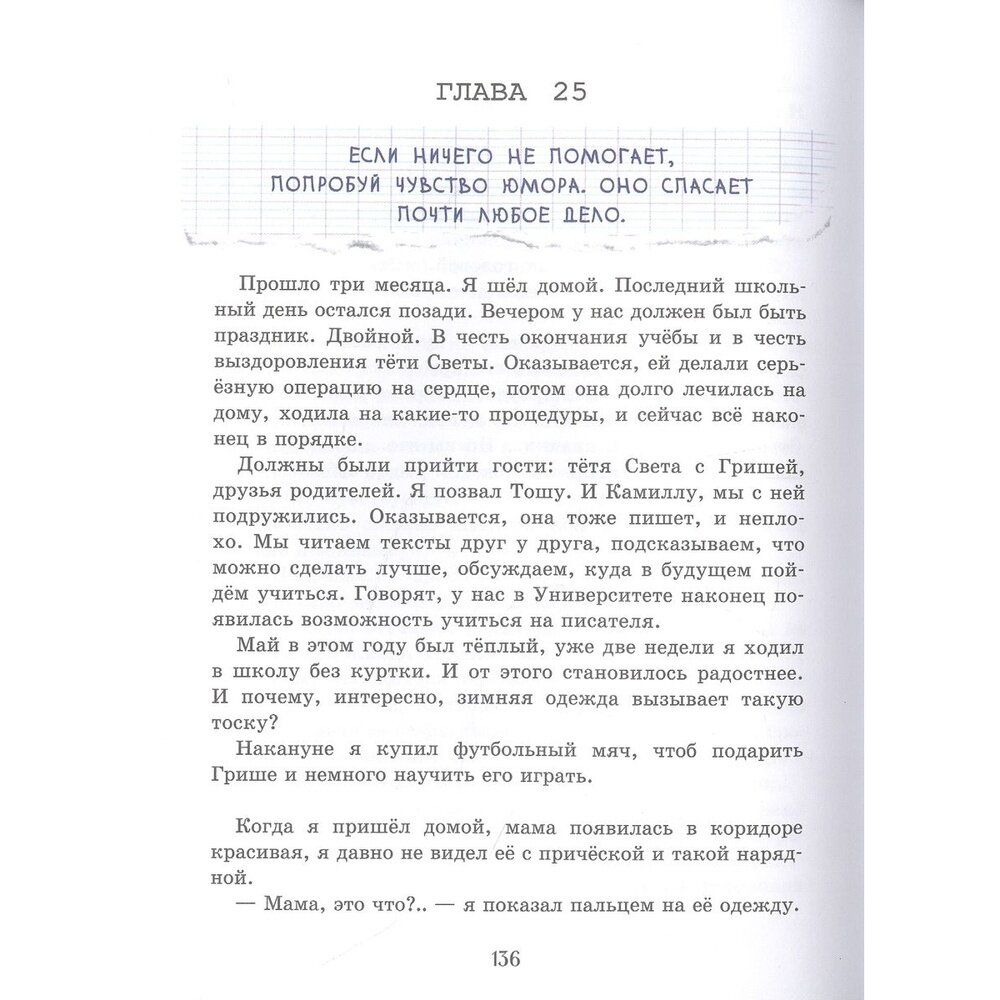 Глубокая книга. Заставляет задуматься о многом. Прочитала сама и обязательно дам своему сыну-подростку. Такая литература должна обязательно попадать в руки подростков. Не ждите лёгкой развлекательной литературы. Эта книжка не такая. Там есть трагедия, но есть и любовь, и дружба, и поддержка.