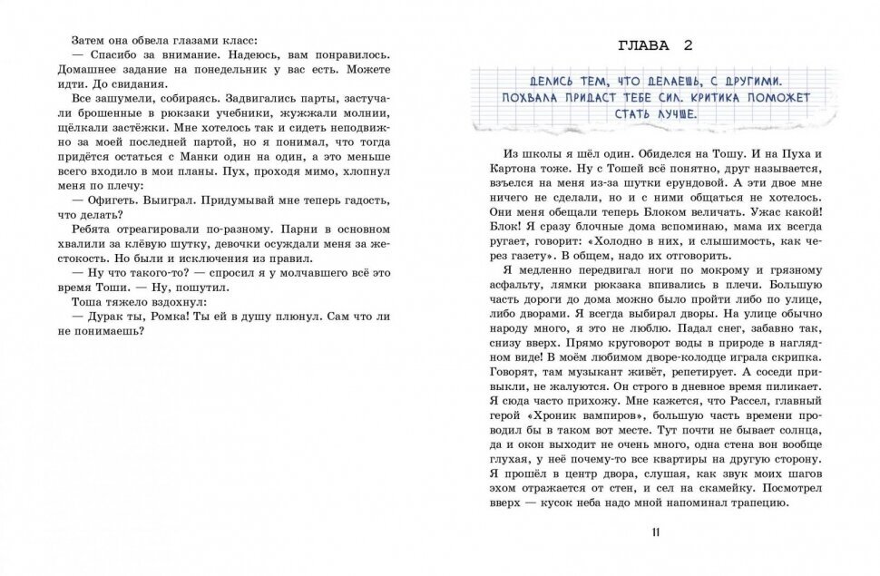 Теперь ему приходится жить с постоянным чувством вины. Ему трудно с этим справиться. Он запоем читает "Хроники вампиров", пишет фанфики к любимым книгам, ввязывается в дурацкие пари и мучается угрызениями совести. Где же выход из сложившейся ситуации, и кто поможет Ромке его найти?
