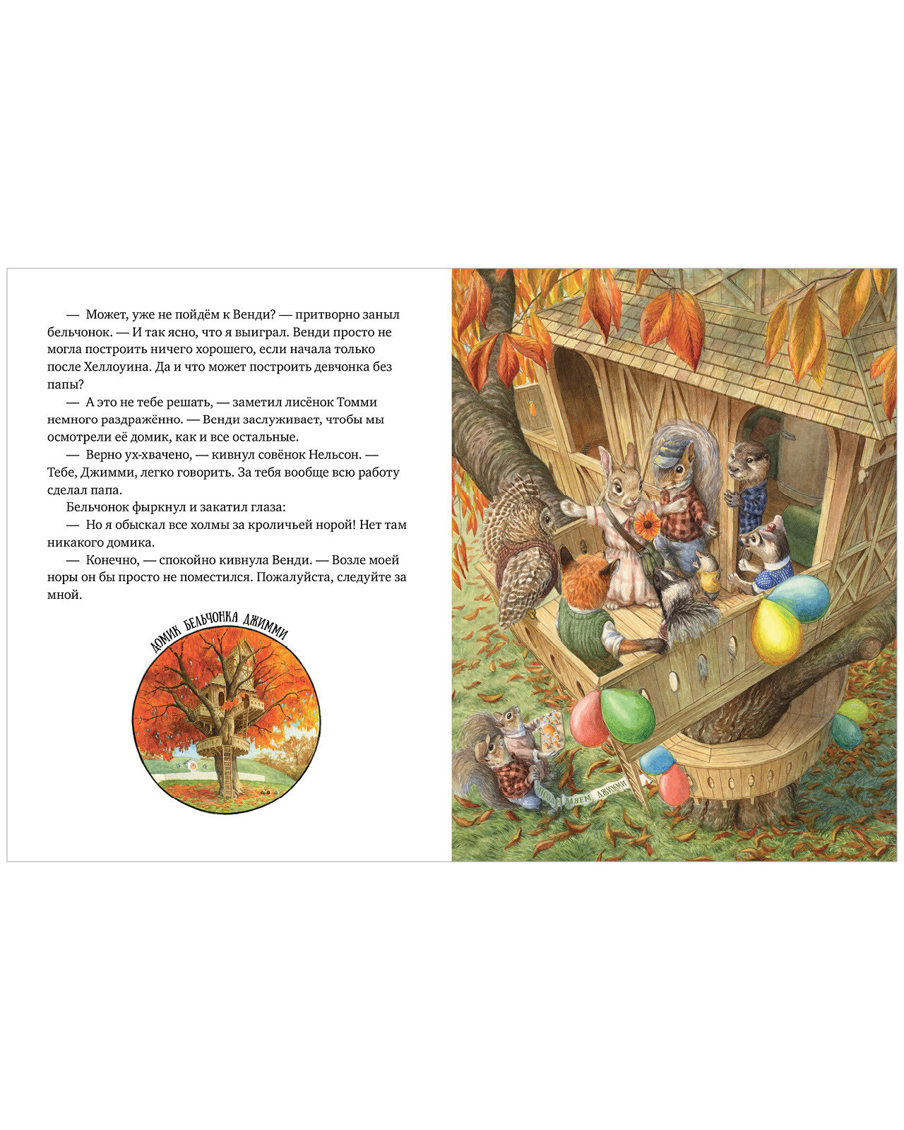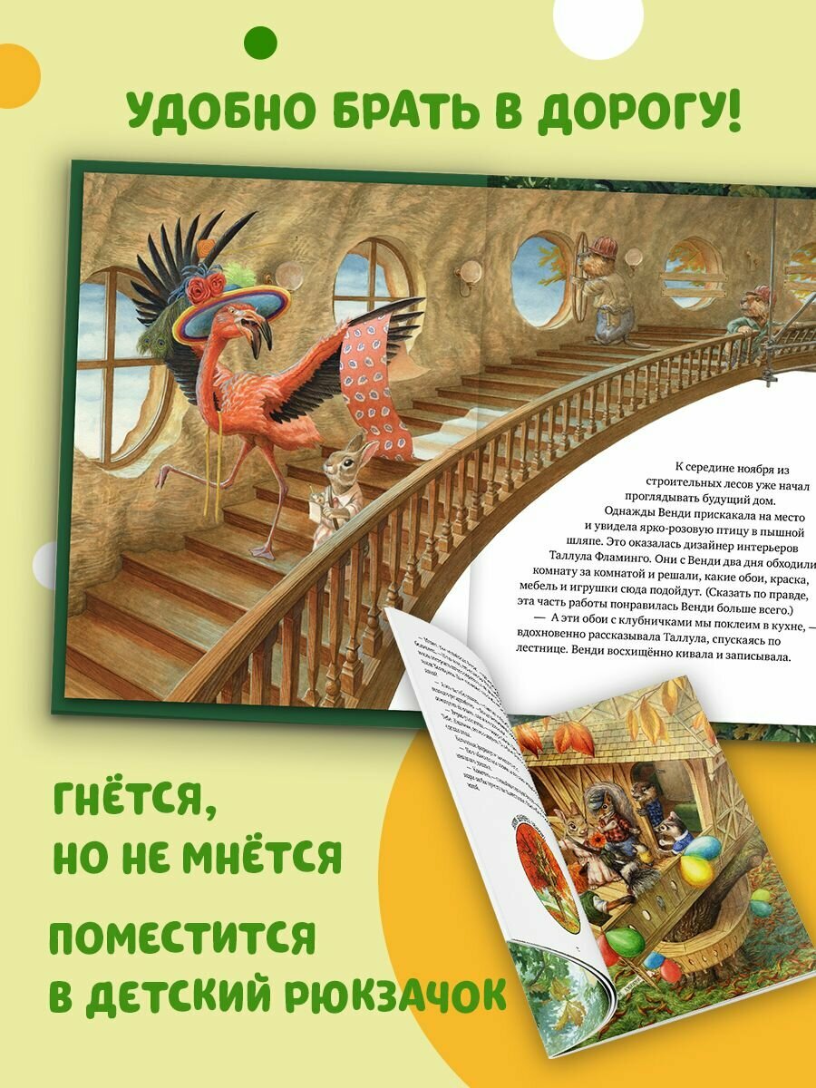 Новый учебный год только начался, а бельчонок Джимми уже хвастается друзьям, что к началу зимы папа построит ему лучший в мире дом на дереве! Возможно, это и правда так? Ведь папа Джимми – владелец крупнейшей в округе строительной компании. Крольчишка Венди твёрдо намерена бросить хвастуну вызов. Но как построить домик, если ты в жизни не держала в лапках гвоздя и у тебя нет папы, который мог бы помочь? Никто из друзей не верит, что Венди успеет в срок. Но, как оказывается, у маленькой крольчишки уже созрел отличный план… Всё решится к началу зимы. А в канун Нового года друзей Венди ждёт кое‑что грандиозное.