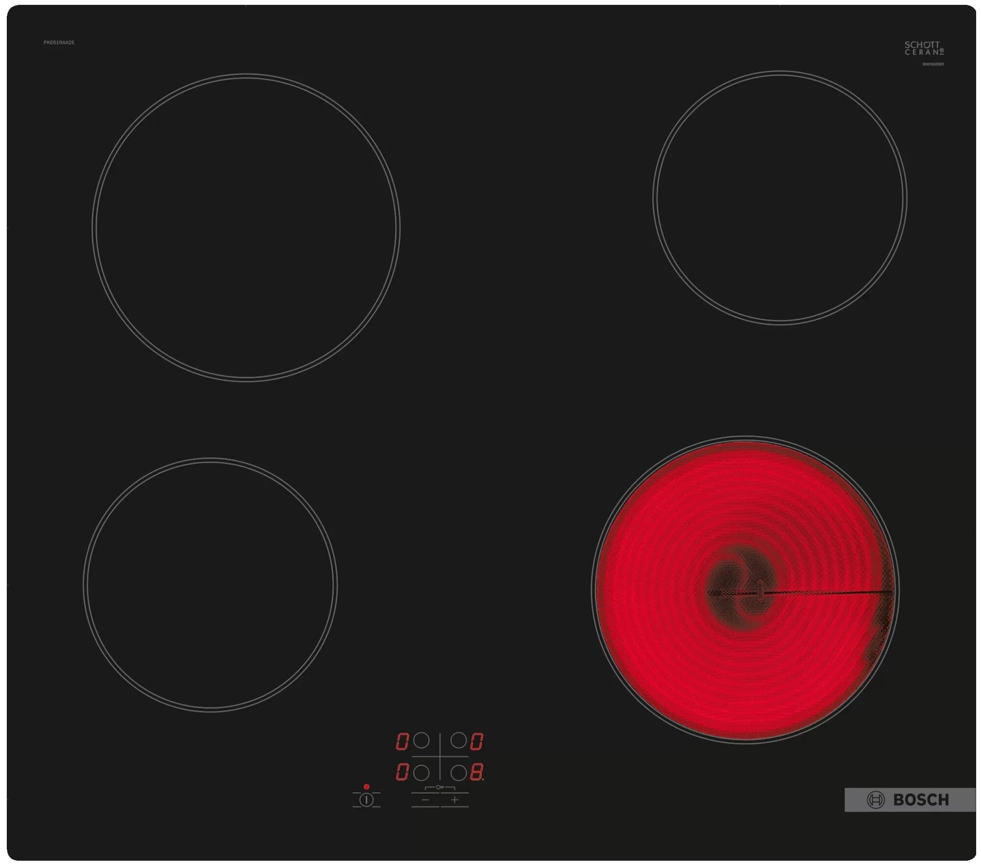 Serie|2 Стеклокерамическая электрическая варочная панель Bosch PKE61RAA2E. 9 ступеней мощности. Управление TouchSelect. Автоотключение. Дизайн без рамки. Мощность 6400 Вт. Страна производства: Германия.