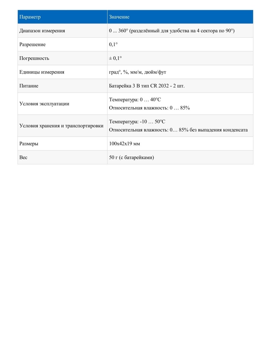 Мини уровень цифровой МЕГЕОН — благодаря наличию двухмерного пузырькового уровня модель предоставляет возможность использовать прибор при проверке и разметке абсолютных и относительных углов. С его помощью можно осуществлять установку оборудования "в горизонт" и его юстировку. Эргономичный пластиковый корпус и компактные размеры максимально упрощают эксплуатацию и использование в труднодоступных местах, а мощное магнитное основание обеспечивает надёжное удержание угломера на металлических поверхностях. Функция нуля позволяет проводить вычисления с низкой погрешностью. Высокое качество изготовления удовлетворит требования самого искушённого потребителя. Простота применения не требует от пользователя специальных навыков, чтобы применять инклинометр в быту и на производстве. Измеритель станет незаменимым помощником у профессионалов и любителей.Преимущества Четыре единицы измерения Абсолютные и относительные измерения Спиртовые колбы с высокой стойкостью к ультрафиолетовому излучению Мощные магниты в основании прибора Функция удержания результатов Автоматическое выключение