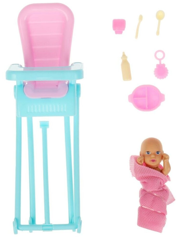 | Комплектация | Младенец, стульчик для кормления, тарелка, ложка 2 шт, бутылочка, погремушка, стаканчик |