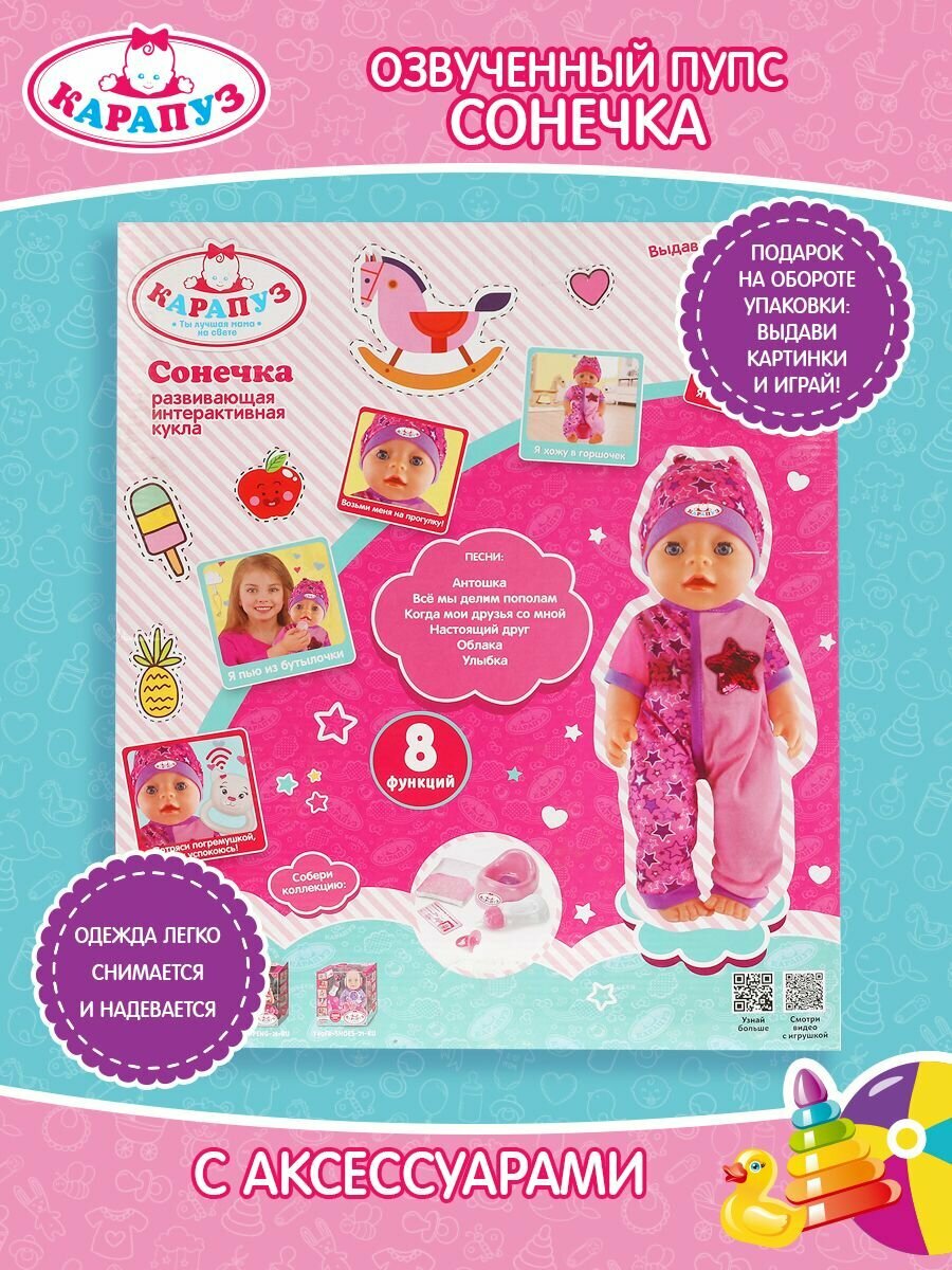 - "Карапуз". Пупс считает до 10, двигает ртом, поёт, 40 см (250750)