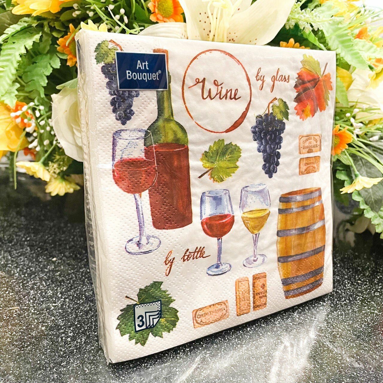Салфетки бумажные Art Bouquet Вино 3 слоя 33*33см 20шт ООО "Русская бумага АЛЛ Продукция" (размер: 33 x 33 см)