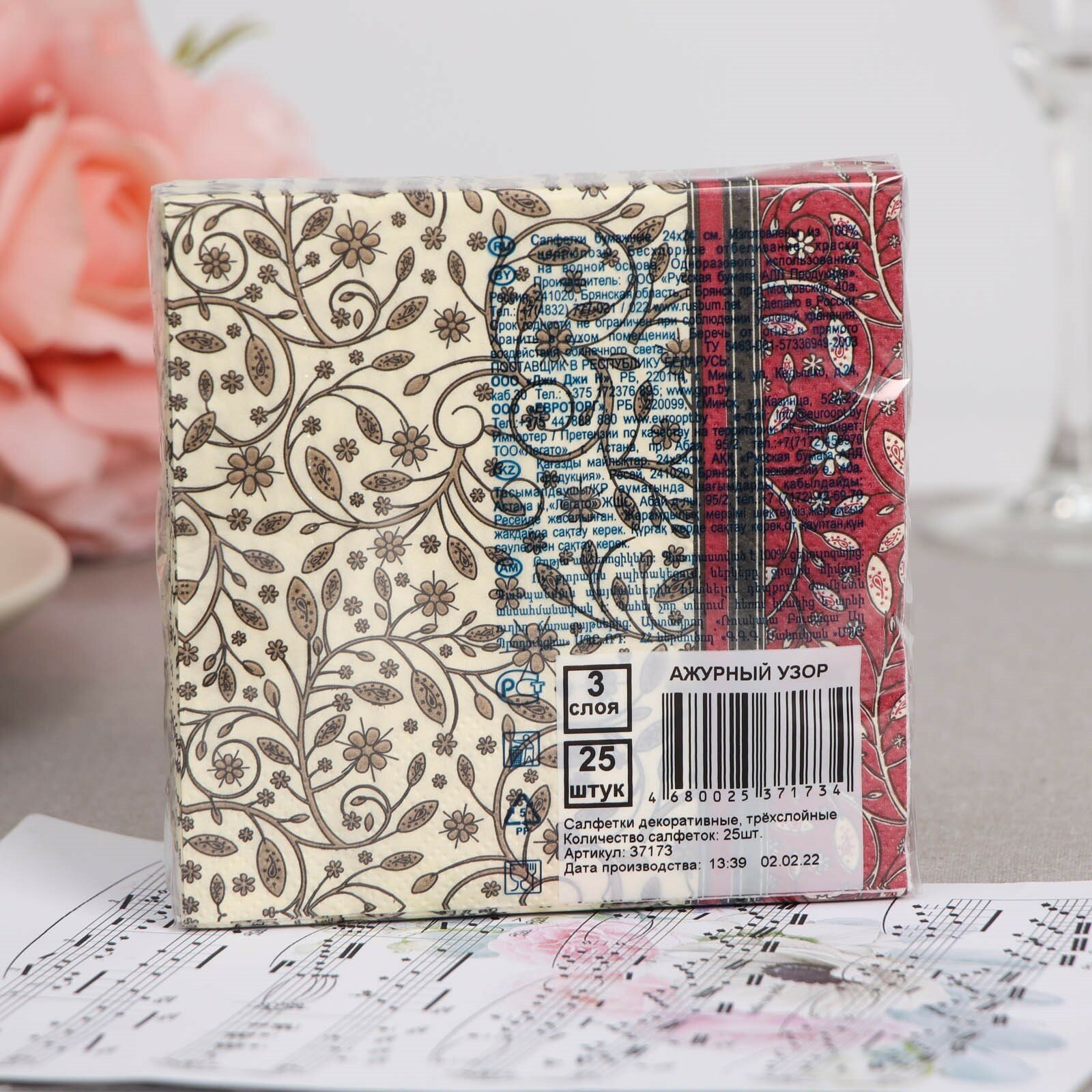Салфетки бумажные Bouquet de Luxe Ажурный узор 3 слоя 24*24см 25шт
